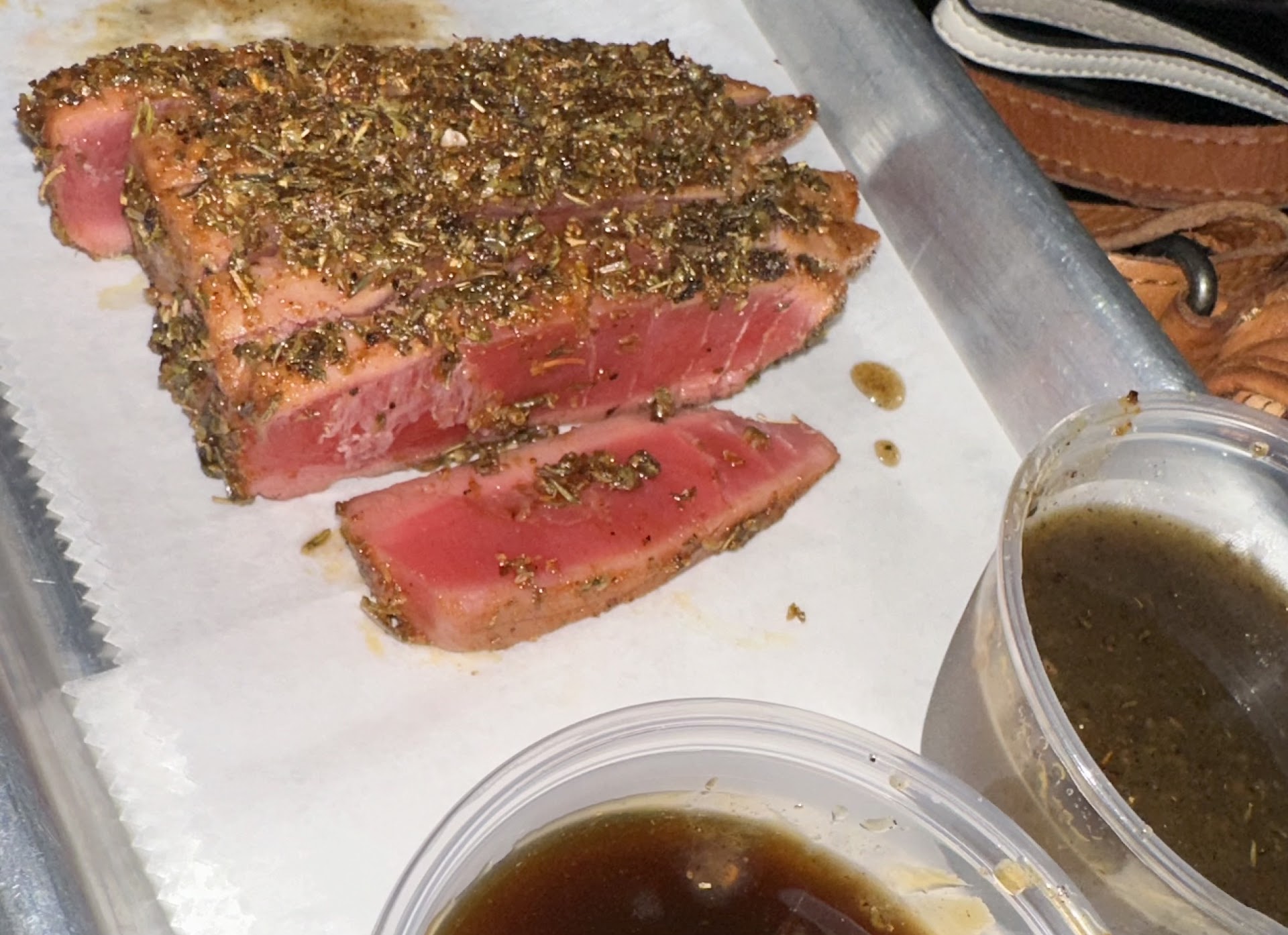 Read moreI went there for the karaoke, but was surprised by their food. It was really good. I mean REALLY good -- much better than average "pub food". I had an appetizer of Buffalo chicken dip. It was AMAZING. (And, I have eaten Buffalo wings in Buffalo, New York.) They use the RIGHT type of tortilla chips, thick and sturdy. The main meal was a Roadside house salad. I added the seared tuna, and it was well worth the add-on cost. It was seasoned to perfection. The ranch dressing tasted fresh-made, and they were generous with it. To drink, I had a tall can of PABST Blue Ribbon. (Hey... it doesn't need to be expensive to taste good. I have enjoyed drinking Blue Ribbon in the Pabst brewery during a tour.). And, for dessert, I had the BEST Bushwhacker that I've ever had.