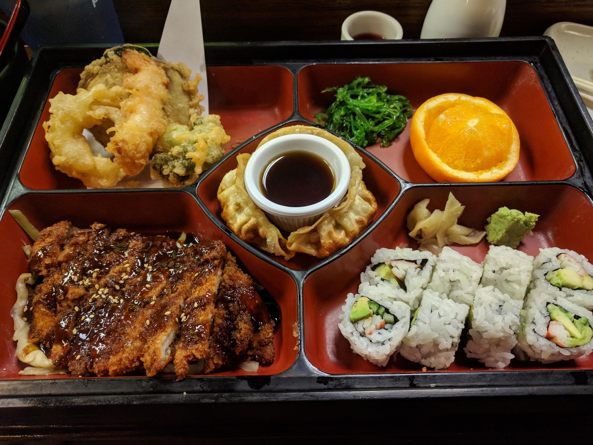 Read moreDrive back from North Carolina to Tulsa by way of Nashville and had to try the highly rated Japanese place. We shared a Teppanyaki Filet, Pork Tonkatsu Bento and Teriyaki Chicken Bento. We thought the salad could have used more. Basically, it was iceberg lettuce with a pretty basic sesame dressing. Given the small size of the salad, I think some effort to add onions, carrots, other vegetables and maybe another type of lettuce would significantly improve this dish. It just seemed that the salad was not worthy of effort. I ordered the filet medium rare and got medium. The dish tasted wonderful and accompanying vegetables were delicious ....the highlight of the meal. However, the steak portion was small, especially for the price. The Tonkatsu was fine, above average. The chicken was well prepared with typical teriyaki sauce. The sushi that came with the Bento boxes was marginal at best. The high rating for this place just isn't justified and for the price, it's...