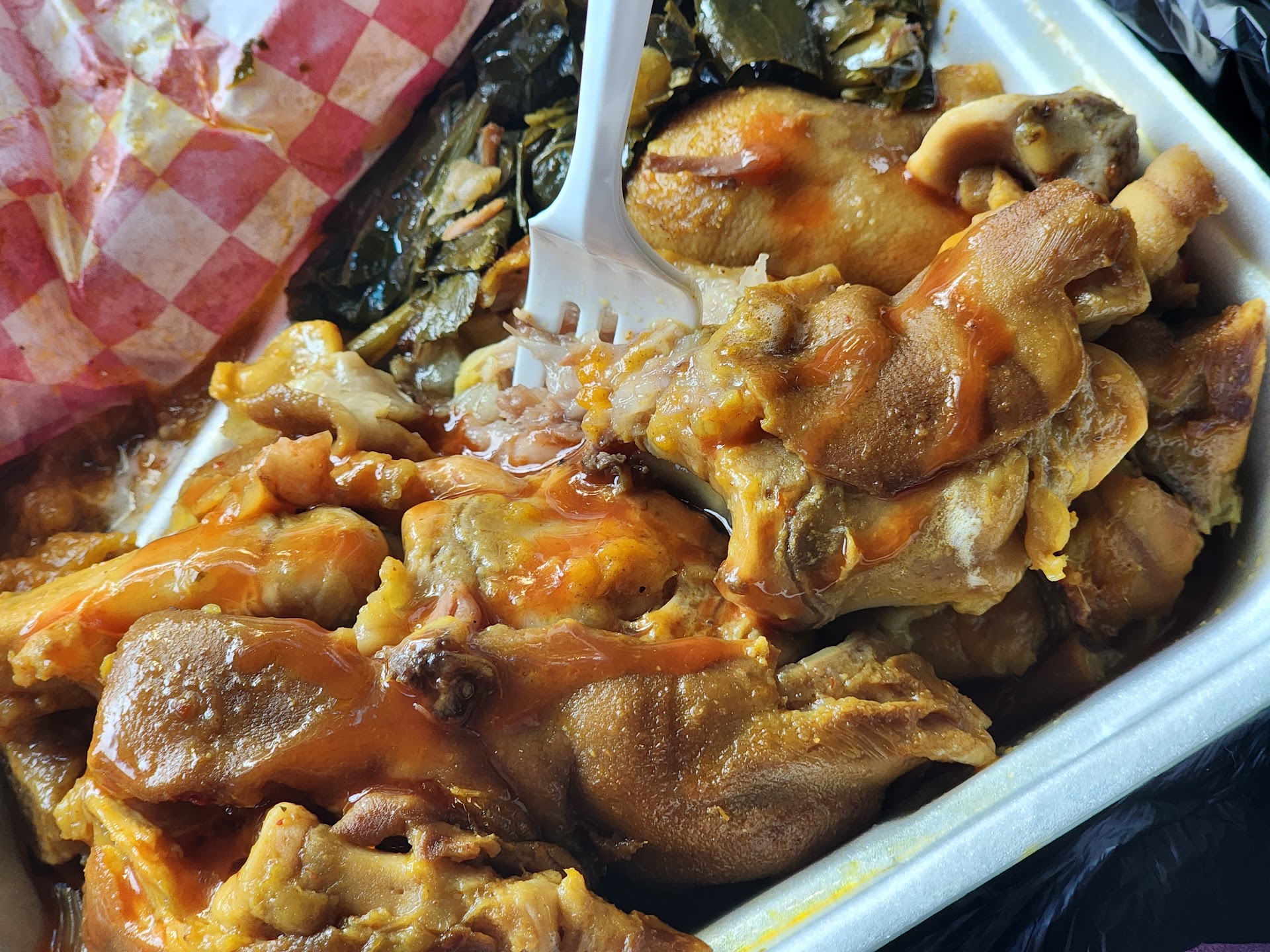 Read moreThe food is tasty. The cashier is very sweet. BUT, they are slow as hell. It dont make no sense. I walk in and line going to the door. Staff moving like molasses, no sense of urgency. I know our ppl in general dont invest in making a business run smoother bc we try to keep all the money in-house- but we have to do better. I went on a Friday and yes it was lunchtime -but a 30-40min wait JUST to order, then another 15 min or so to get food is unacceptable. There were like 10 ppl behind the glass, there is no reason it should take that long to make a plate. I tried to call the order in - NO answer. Tried to order on Doordash - business closed ability to make order online- Please do better and make your business more consumer friendly and accessible. Then my order was wrong-I added a fried chicken leg- I got and was charged for 2 wings - but after waiting it felt like hours I just took and went back to work. Also, the porkchops are way too small and thin. The cook is also using way too much pepper and salt.