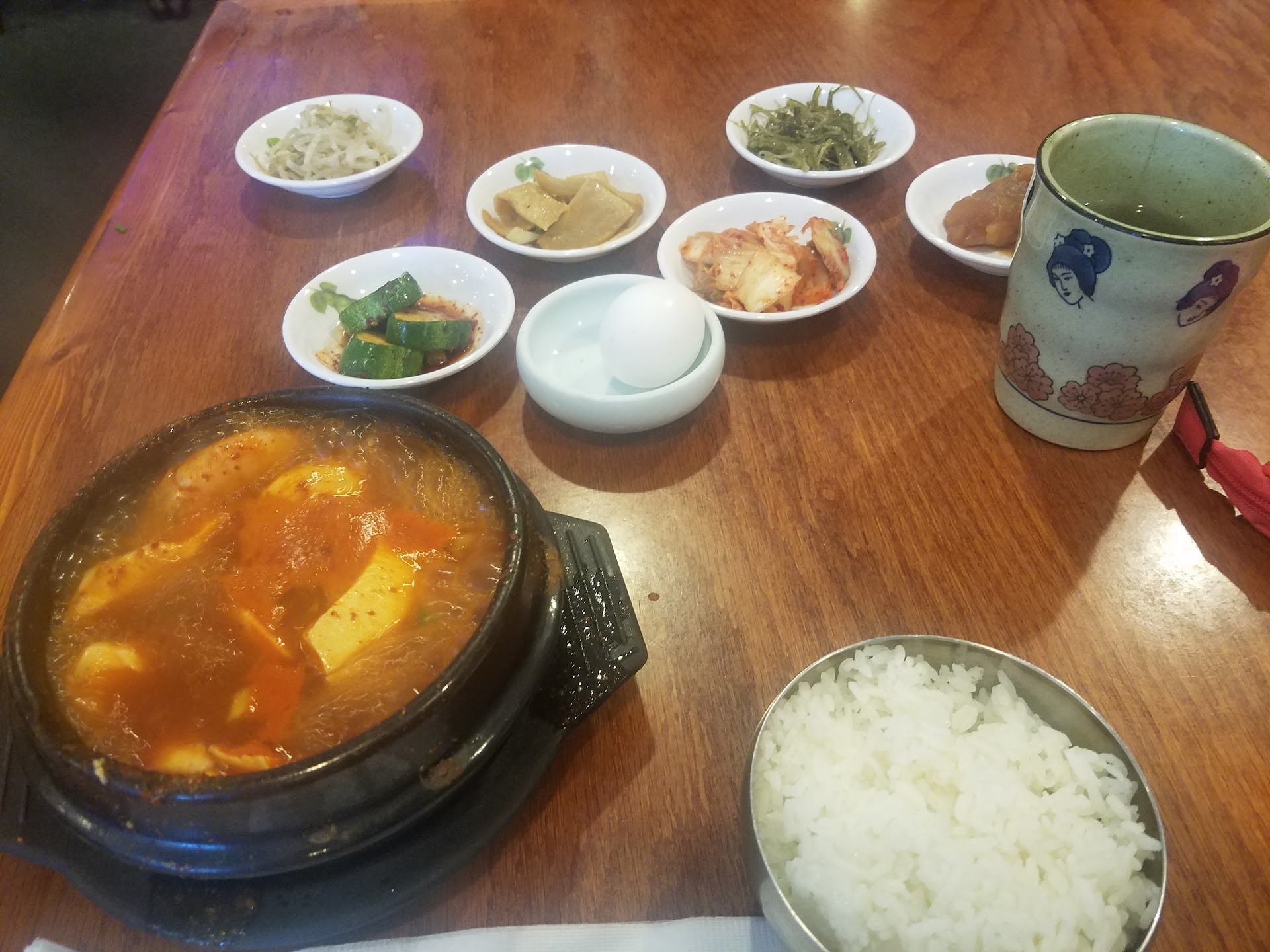 Read moreIve had Korean food in many areas ans different states, so it is not new to me. The Service at this particular spot is poor. I came during my lunch. I was the only person in the restaurant and it was so hard to get a server's attention. A younger server lady was on the phone and passes by me when I clearly needed more banchan and rice. The elder server lady did not speak much english and gave me a shocked look when I asked for more Banchan and she laughed at me almost did not serve me more. Very patronizing. I ordered my soondobu spicy, yes food was good. Banchan servings were small and they only served me the Banchan once main dish was ready. I have never been served so poorly at a Korean restaurant in my life. I liked the food and service by another Korean spot a bit further from my work, I chose this place because it was closer, but clearly is...