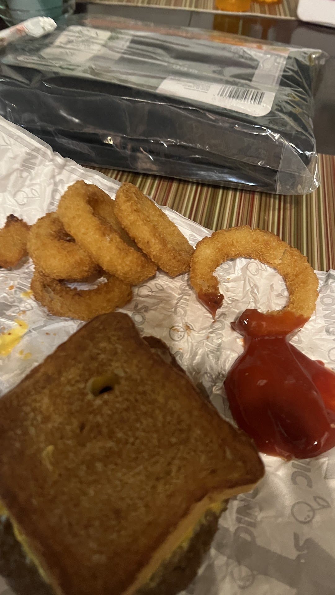 I went out today to purchase a cheeseburger combination. When I arrived, around half of the stalls were filled, and only one female carhop was visible, but inside I could see two guys. After a few moments, the speaker came to life. "No onions?" the guy employee said after I ordered my combo with extra onions. No, I want extra onions, I said. He then inquired about the side and the beverage, but the screen still showed no onions. Is there anything else? he inquired. You need to change it to extra onions, I remarked. He responded that it was right on his screen, but that the screens outside did not always reflect this. Okay, whatever, as long as I get some extra onions, I said. So, because he didn't appreciate being questioned, that's where he must have developed an attitude. Several vehicles departed the location, and others arrived. I sat there observing a large number of individuals come and leave. When I finally pressed the button again, a male voice inquired if he could take my order. When I explained that I was still waiting, he apologized and said, "Oh, sorry, she's bringing it out right now."