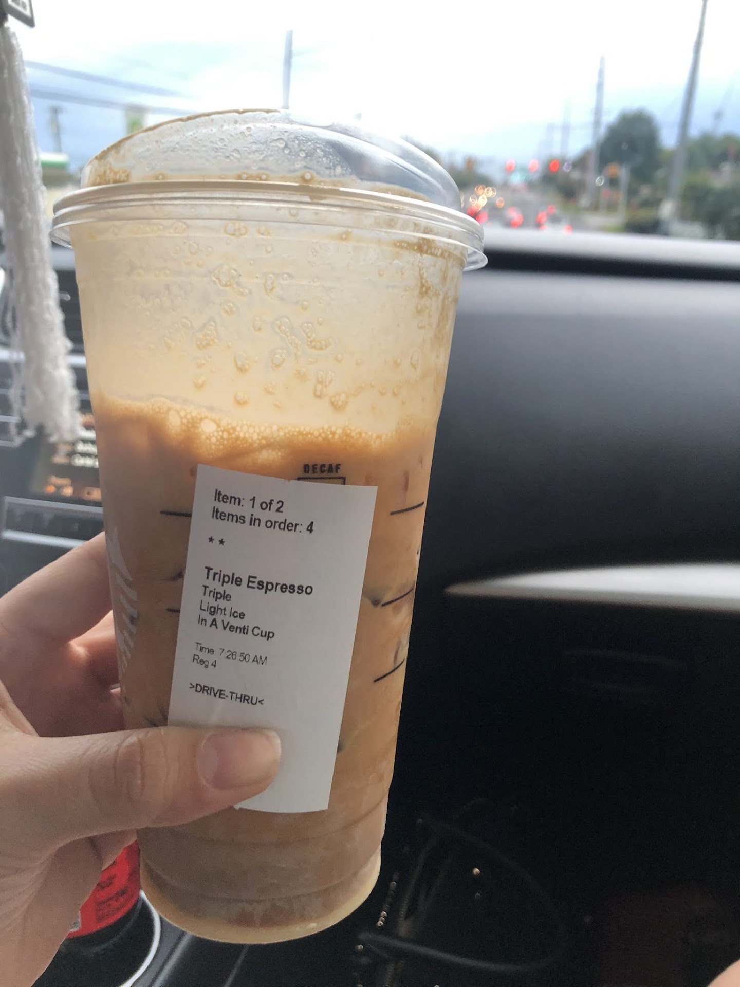 After about 20 minutes, I noticed two young female poc and culture were still waiting for their order, as they were waiting when I first arrived. I asked them if they had checked on their order, yes I know it's nosey but the momma in me wanted to help them. My 1st drink started to come out at this point.