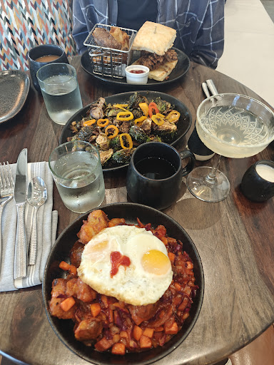 The food all looked good, and was close to actually being good. The hash had potential, but the carrots were totally raw, which was bizarre, and it seemed to have all been tossed in ketchup. The chicken biscuit seemed to literally just be fried chicken on a biscuit and nothing else. The sprouts were tasty, but undercooked. I enjoyed my cocktail, but there wasn't a lot of variety in the options on the menu. The coffee was burnt, which is unfortunate for a brunch. Maybe we caught a bad day?