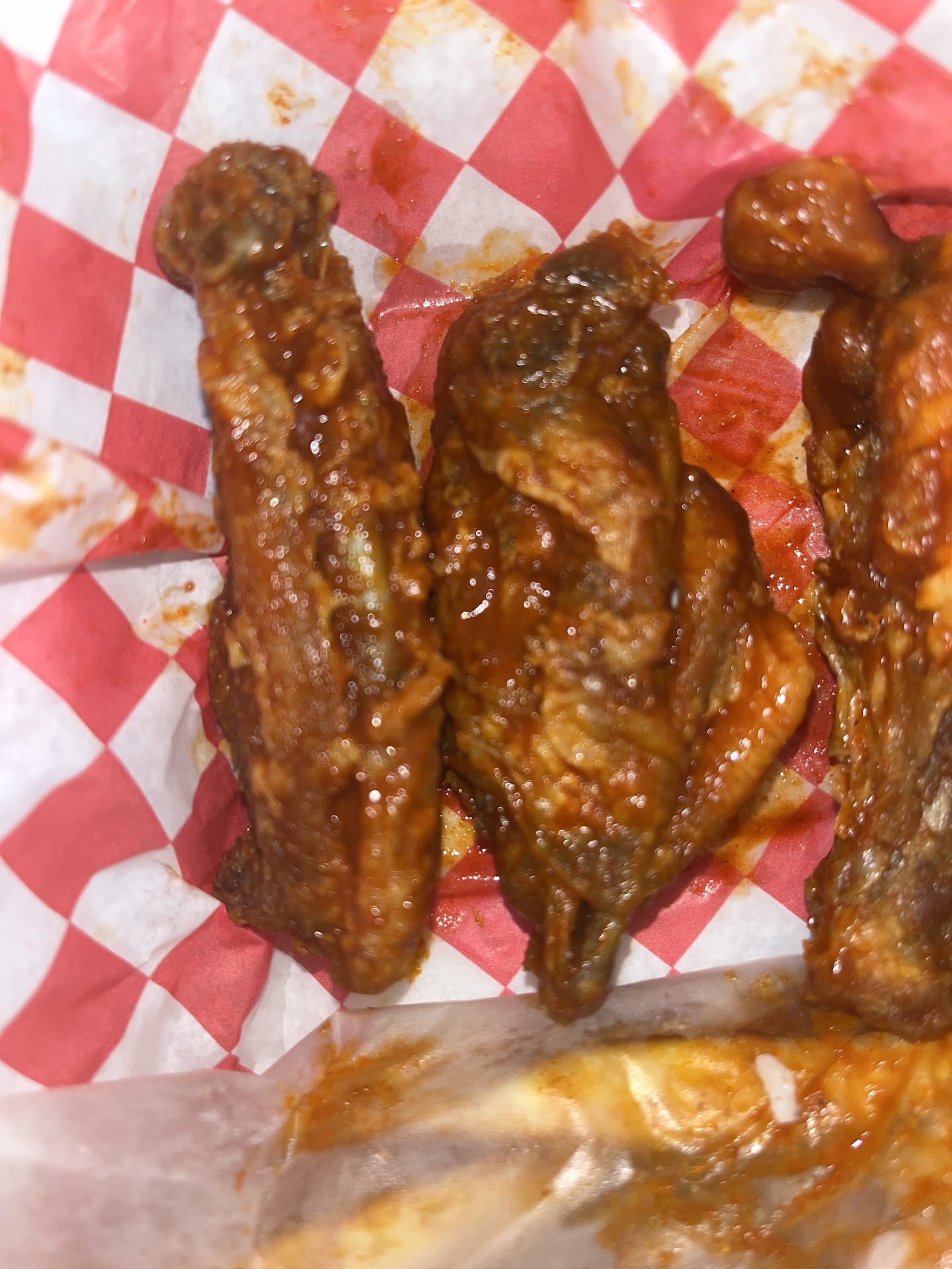 I travel for a living, and was looking for great wings. I checked out this place and ordered a 10pc lemon pepper wing, Cajun ranch fries, and fried okra. The wings were pretty mid, I asked if I could get LP wings dry but they donât have that as an option only wet, (business note, you should totally have both options to cater to people who donât want messy drippy wings), the Cajun ranch fries were drowned in Cajun season and also Topped with shredded cheddar cheese which I didnât know came with it, I also tried to ask for no Cajun but that is also not an option, (shredded cheese should totally be an option and you should make it clear to the customer that it comes on it before just throwing that on (ranch fries) I wouldâve preferred nacho cheese if thatâs the case. I give the okra a 10/10 and it is the only thing that deserves it! The food overall is a solid 3/10. There are small things that could be fixed but seems like this business may be stuck in their ways and not truly catering to the customers who provide the money. Thank god I ordered my food to-go because the inside of the restaurant was...