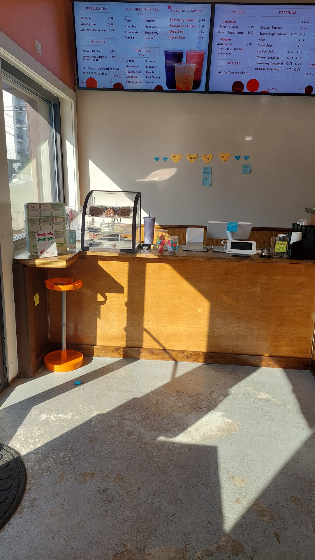 My dad and I know very little about boba, but the staff were quick and polite in answering our questions. Thereās a sitting area in the back, and an area where you can put post it notes in the front. The outside of the building has a cute mural with some Korean on it. It was especially exciting to me as someone who is learning Korean.It was a very enjoyable experience!