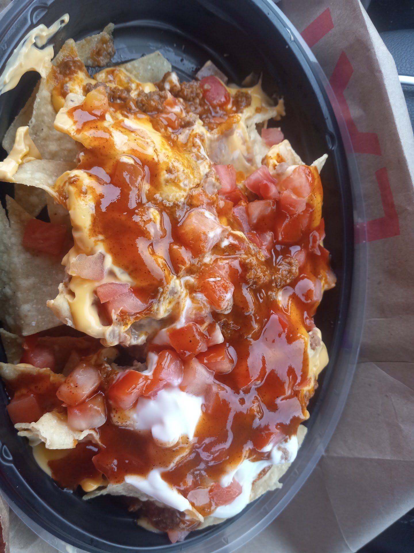 after a long shift in a restaurant, you sometimes get a craving for a late night snack. Last night, I made the decision, as well as many others at the time, to head to TBell to fulfill the call. I placed my order through the app ahead and when I arrived the drivethru was spilling out into the street. This seems to be a relatively frequent occurrence, as the other two fast food joints in the complex are often bombarded with late night drunk uber pools and stoned kids gorging their minds out on cheap fast food. Even though they were slammed, cars were continually leaving the premise, and the line inched forward at an admirable pace. I ordered a cravings box with the Naked Chicken Chalupa, Crunchy Taco, and Fiesta Potatoes w/ Ground Beef added and it was an extraordinarily satisfying experience. I'm serious, not just stoned. Everything was hot and fresh, and tasted well above average. Give bottom wage earners your patience and respect. They keep killing it despite a high amount of continual...
