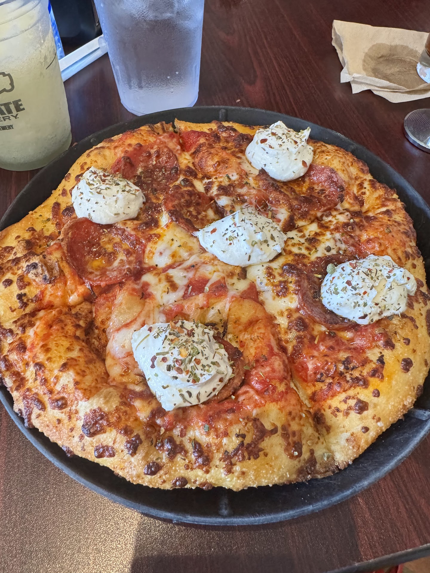 When my pizza eventually arrived, it was a complete joke. The pizza — was barely warm, with a limp crust that was more sponge than dough. The toppings tasted like they’d been sitting out since lunch rush. If you’re going to charge $18+ for a pie, at least make sure it doesn’t resemble something microwaved in a dorm room. I mention it to the server but why... as the response was "the pan is not hot, but the pizza will be". Really? An absolute lie, if I had not been starving and not having the energy to even walk to another restaurant I would have asked for a complete refund and promptly exited.