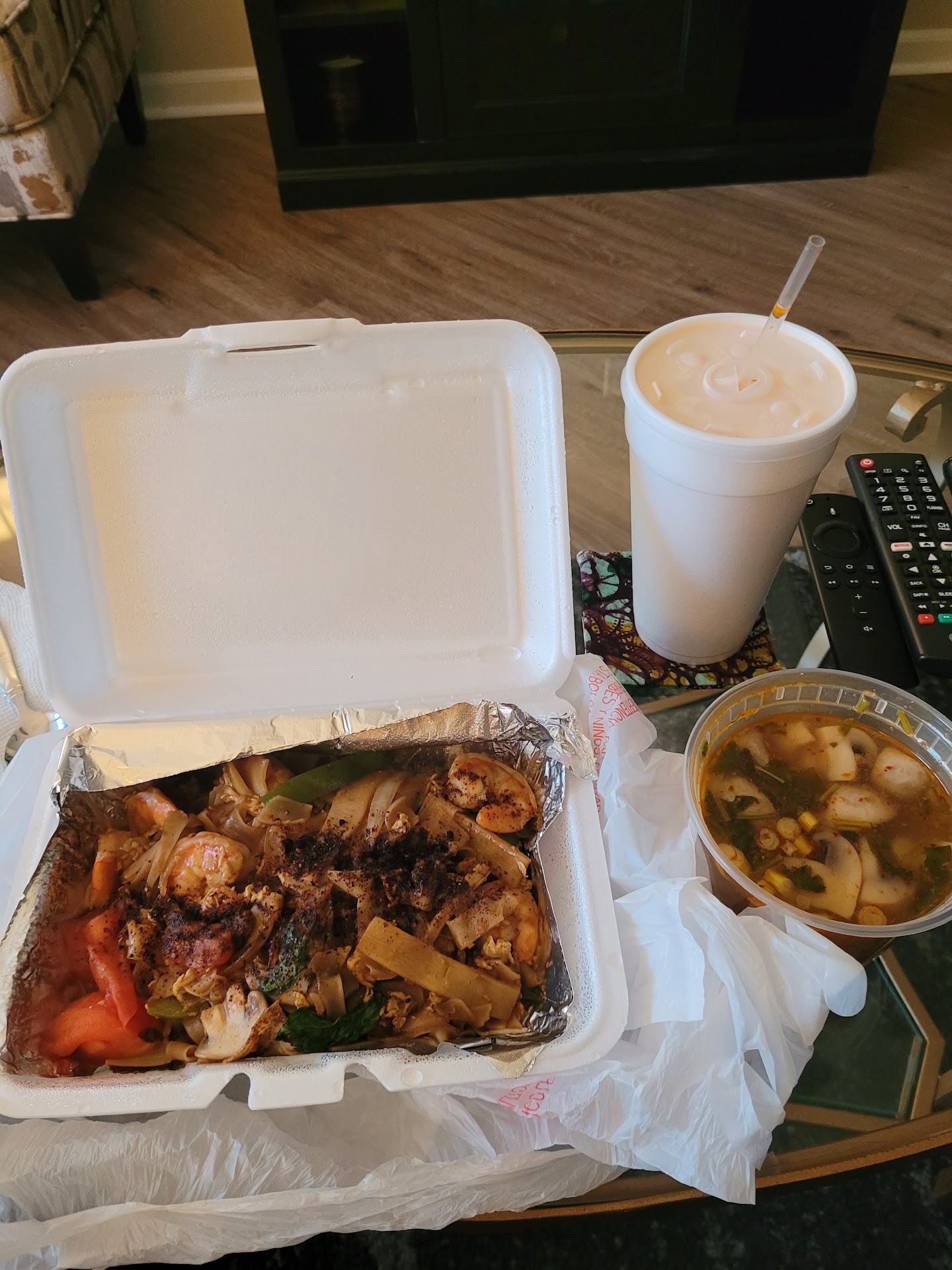 Ā Ā Ā Read moreThis is a hole in the wall. Tables/chairs reminds me of a Chinese restaurant. It might have been a fast food place at one time. Not a place I would want to go on a first date, but definitely a great place if you are done trying to impress each other. I came for early dinner and they had a consistent flow of people coming in for early dinner. I would have love to try there lunch specials. Maybe next time. I ordered Tom Yum soup with chicken. It had a nice flavor, but missed the essentials. In this case lime, lemon grass and kaffir (lime leaves). The soup was also sweeter and it did not have the sweet & sour combination that is essential to Thai cooking. I added lime, better, but still missed the other flavors. This may be cooking from the central part of Thailand, but way sweeter. It might also be an off day for the cook. I also ordered the squid salad. Great mix of salad greens, not just iceberg. Squid was cooked perfectly, not over cooked. Again, it was very sweet. Good flavor, but too sweet. I loved there sticky rice with mango. The rice had slivers of coconut which is a nice touch. Sweetness was not an issue, lol. For Thai food, they are very reasonable, the icing...