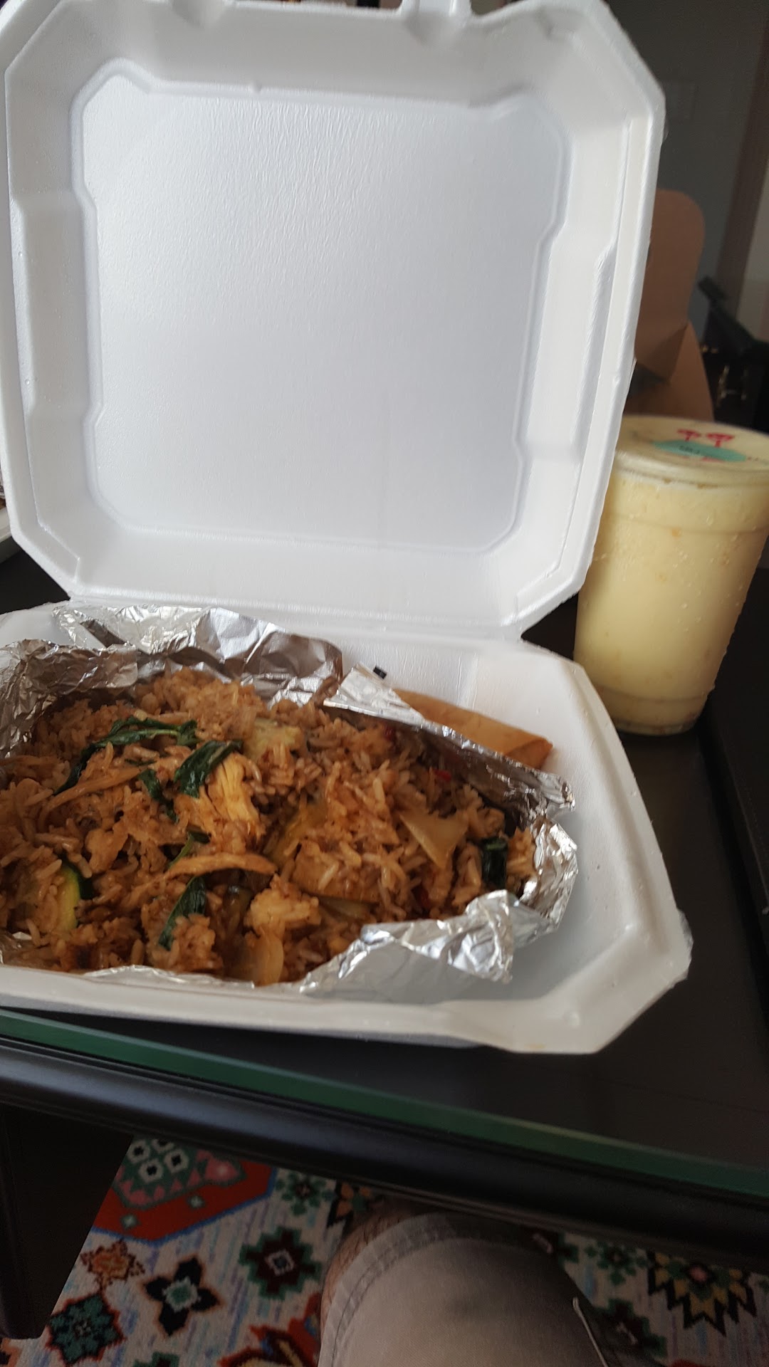 Read moreThis is my oldest sons favorite off campus meal. So while dropping him off at Vanderbilt University for the semester we decided to go. We got there at about 5:30 pm and there was already a line out the door. That tells me that it is great food. Looking through the menu you get a wide selection of Thai meals with a large choices of proteins to add. I went with the Basil Fried Rice with chicken and a spring roll. One thing that my son warned me is that the spice level starts high based on what we eat. I decided to go with level two which left my mouth tingling but was not unbearable. I also tried the mango smoothie. My son told me the place gets packed so we decided to go back to the hotel to eat. It was delicious with the Basil not being too over powered with the spices. We will definitely need to make this a regular stop during drop offs and pick ups. I know my son goes every...