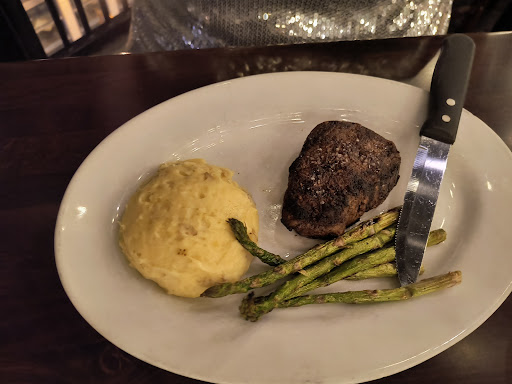 My wife's filet was not very flavorful but the highly recommended sauce that the filet was cooked in (?) was awful. The skin on mashed potatoes were very good as was the asparagus.