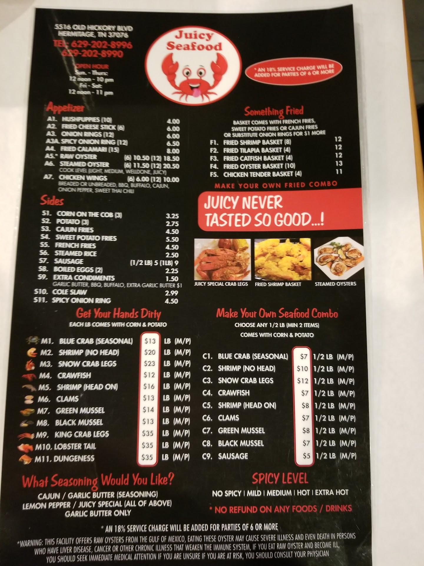 My advice to the Juicy Seafood owners is to not treat your customers like they're trying to steal from you and listen to them. Sometime complaints are genuine, and you might be running off potential good customers because of previous bad experiences you may have had with...