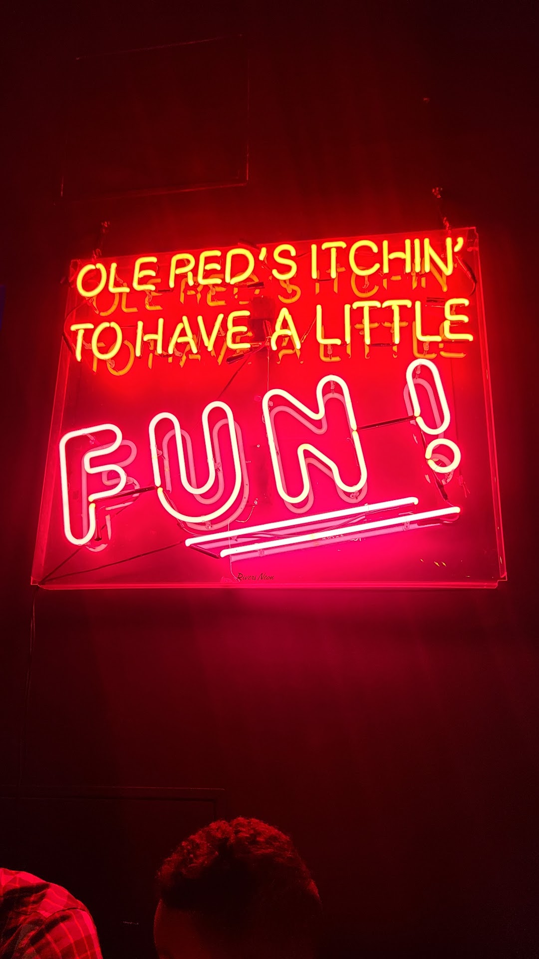 ย ย ย Read moreWe went in on a busy Saturday night and my friend had trouble finding the table and jokingly told the bartender he โwas drunkโ and so it โtook him a little longer to find the tableโ but the bartender didnโt think that was funny and said he wouldnโt serve us because โwe weโre drunkโ even though the table of eight bridesmaids next to us weโre practically rolling on the floor plastered and then we went to Kid Rock Bar across the street where the singer screamed โwhoโs drunk in here?!?โ and we screamed โNOOOโ because we didnโt want to get kicked out of another bar and then we danced all night and didnโt feel bad about Kevin who still missed us at Ole Red...