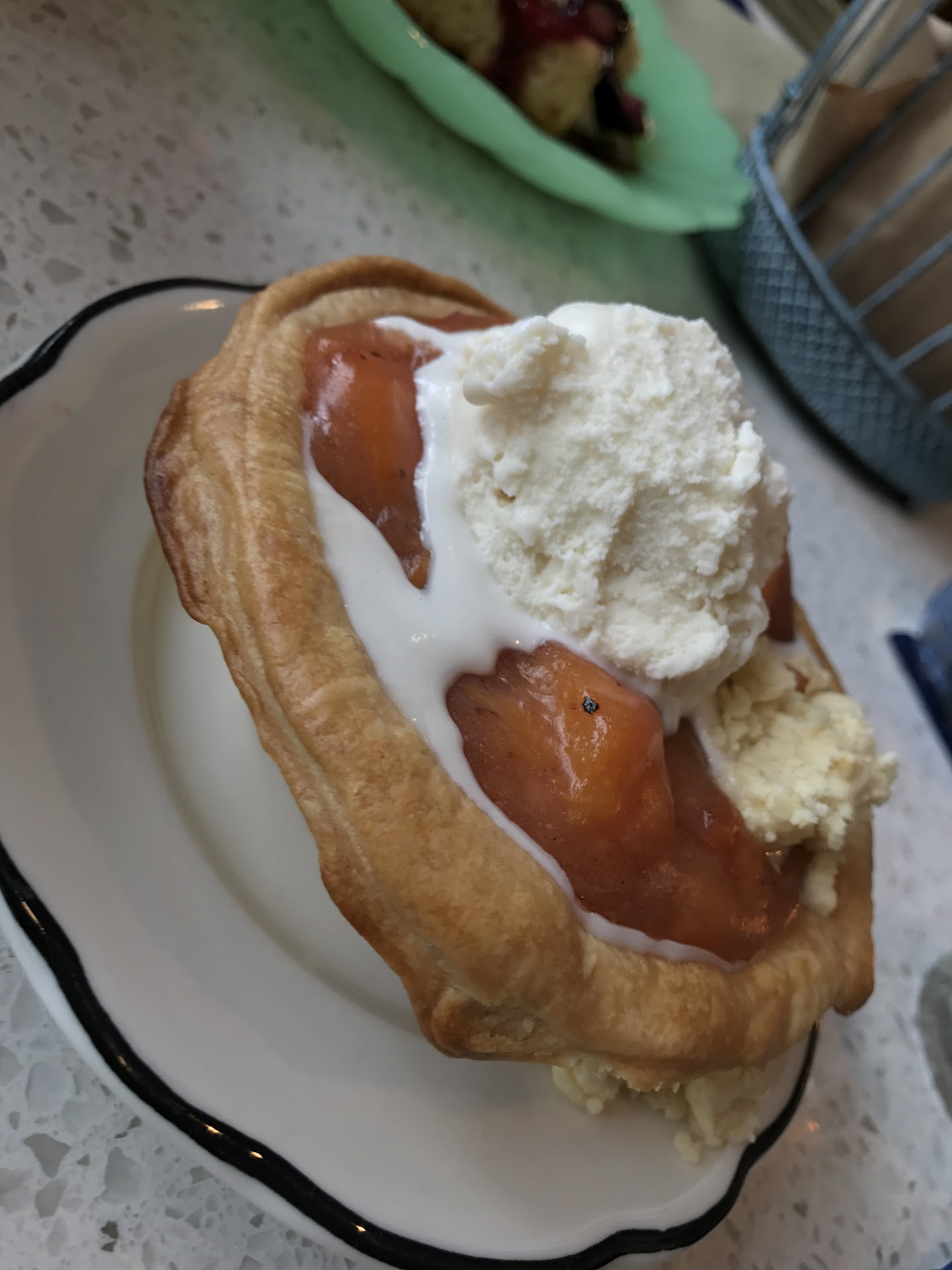 For dessert we got the pie, the cake, and the cookies. And also the coffee, which was both smooth and strong. The pie had peaches, ginger, and...something else. And ice cream, definitely get it with the ice cream. It split four ways surprisingly well, and was the best peach pie I've had in a long time. The cake was a browned butter cake with blackberry sauce, peanut butter creme, and some sort of delicious crumble. I was amazed at how well the peanut butter played with the fruit topping...until I remembered PB&J. Definitely had that going on, but SO much better. The cookies come in a quaint birdhouse, and included chocolate chip, toffee, something else, and (my favorite) a citrus shortbread. If I hadn't just eaten both pie and cake I probably would have enjoyed the cookies more, but I do know they were delicious.