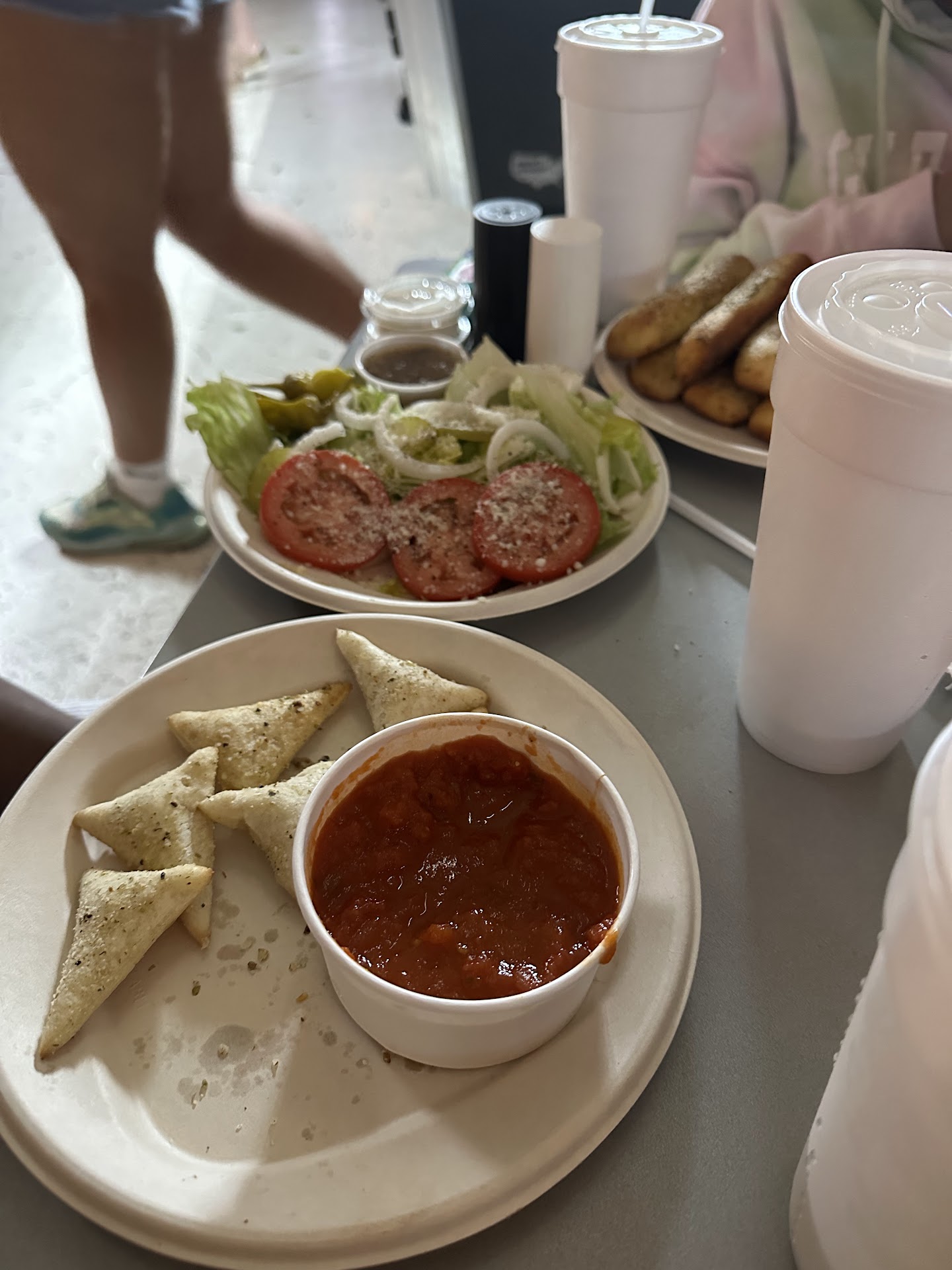 Our server was SO dope. He was attentive, quick, and knowledgeable about ANYTHING we had to ask. I wish I could remember his name, but he is a VALUABLE asset to this company. The pizza was great, cheeeeesy, and they do not hold back on pepperoni AT ALL! They have salt, pepper, parm, and crushed red pepper at each table. They have condiments at your request, as well.