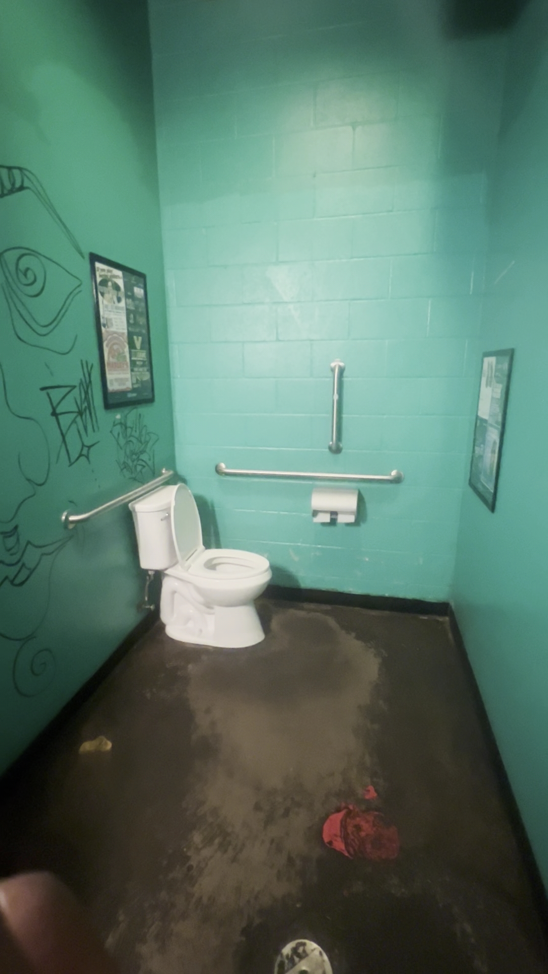 Walking in you're met with a friendly girl behind the counter and what appeared to be a tired pizza chef. "Bless his heart". The lights are kinda dim, there's tons of old band posters on the walls, and the walls are painted like the mystery machine from Scooby Doo. It's a vibe really.
