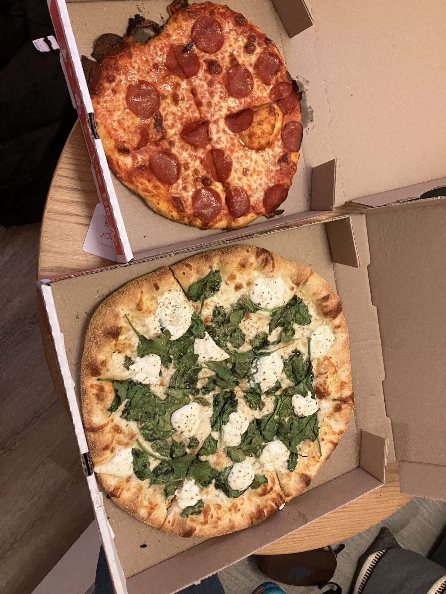 Food: Their red sauce is delicious. I cannot say anything else. No notes. It pairs so well with the garlic knots and pep pizza it is a good third of a pizza and complimented the soft dough made just right. The crust is above average with slight crisp to it and nice thickness and crunch. What evens out the rating on the crust is the dough having those air pockets that are a mixture in texture between the crust on the edge and the dough underneath. The toppings are generous and we're quite tasty. One of our specialty pizzas was phenomena 10/10 and the other was 7/10 due to toppings (imo negligible bc everything else from the first one is the same and we chose these toppings).