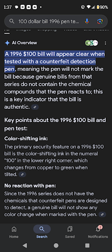 So Here I am ordering food to go because I had cash for once instead of it being on my chime card or Dasher card. I would have been putting a 5 star rating for how quickly my order was done and how nice the guy was who took my order. Honestly was going to give him a $15 tip before I left. But I had 1996 100 dollar bill. You know the ones that the way you can tell it's real is the line in it with USA 100 up and down it. Benjamins ghost face to the right of it that you see on both sides. The 100 that turns green to black in the bottom right corner? Apparently the VERY old manager I'm assuming is her roll insitied I had a fake 100 dollar bill I was trying to pass off. Maybe you need to get better glasses or take another corse on counterfeit money. That pen you used when it does a real 100 bill from 1996 the clean means it's real. Bc it's older. It would turn brown when marking it if it was fake. Orange is for the newer blue bills . She took 2 photos of it and called two different people to see if it was real or fake. Never mind the fake she has two female employees check it and one male check it with the pen and asked what's the problem. I guess they didn't want to argue with the old lady bc they know she wouldn't back down. You didn't do me a favor by taking a 20 dollar cut mamm I heard the phone calls . My story about the bank giving it to me wasn't a story. Its what happened you lost a 20 dollar pay cut bc you didn't want to admit you were wrong and cause a whole seen for no reason. I didnt get the drink I ordered but I guess you can subtract that from the pay you're apperently losing. You're lucky my partner waited out in the car bc I have a little bit more tolerance to ignorance and being insulted. you need to make sure future manager have better training and less pride on how to tell if a bill is fake. Other wise you'll lose a lot of money and have a lot of upset people that won't be like I was and just walk away. Also don't soak the bills with the pen the bill looked like you put it in water when I...