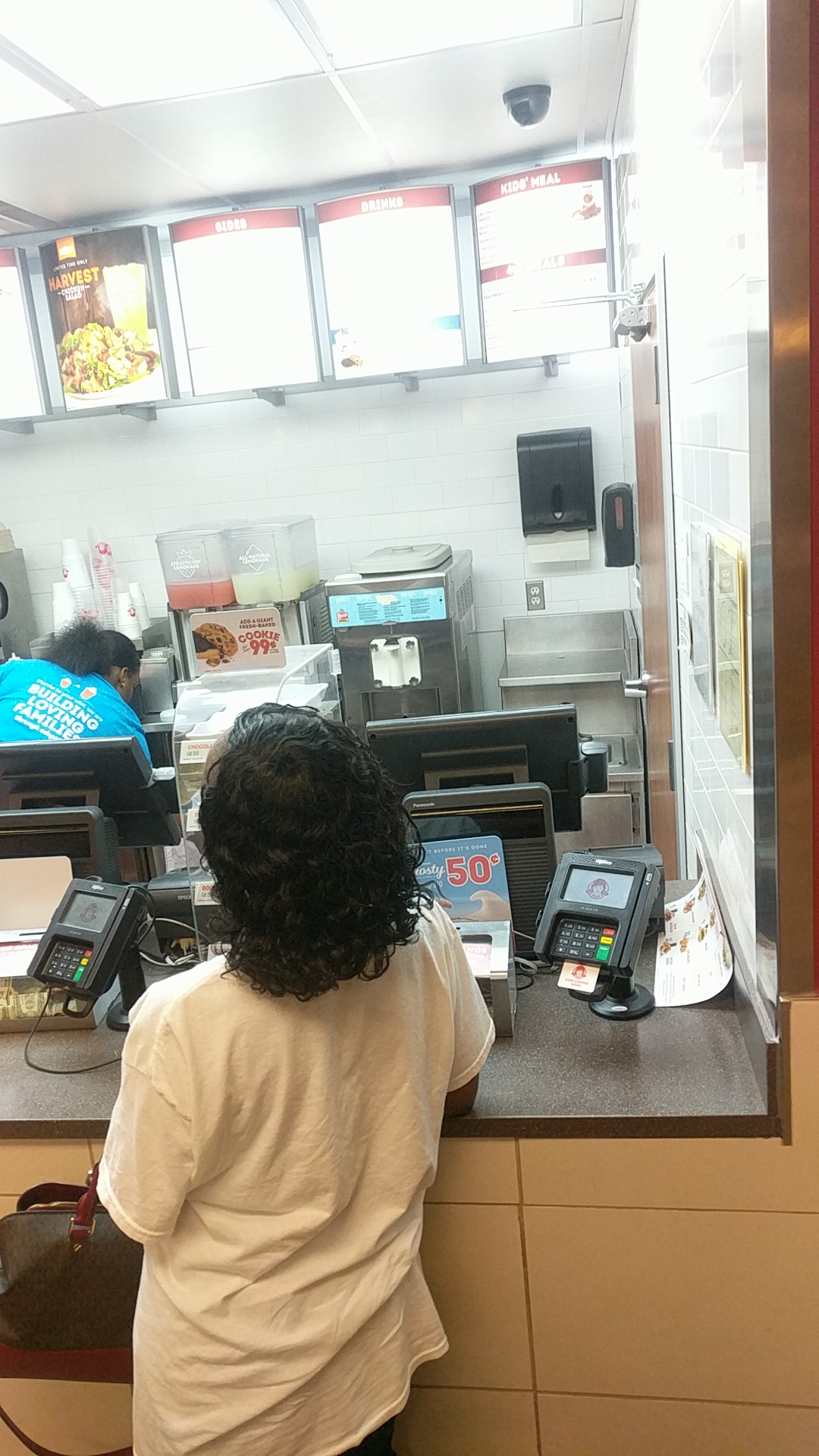 This place is getting very,very,cheap meat for burgers,I am,or was trying eat Dave's double,and every single bite taste like beef liver.Why????????????????????????????? I'm telling you people.....do not eat hear unless for fries,or frosty if restaurant appears clean,but all of this,and I am sure every other location is the same....Please stay away from their so called burgers,because there is no telling what this meat is actually made of.I understand cutting corners,ECT,but this chain is going downhill fast...no hamburger is suppose taste like beef liver......could it also have beef tongue,and testicles,and all that is not steak meat?It's like Wendy's using sweetbreads that usually get tossed by butcher,and forming patties out of.If no believe me.....go spend the six bucks,and take you a big bite of mystery meat beef liver patties that this particular store is pushing.Save you money,and I guess stop eating meat because one bite of a Wendy's burger " is not regular hamburger beef,I'll guarantee if broke down in testing facility their so called meat is made of beef liver,tongue,and everything else a butcher would usually toss.Ill never take another bite,and if was not late I would take back and get refund.Cheaply made food here,and the meat they sell is not what you think you are paying for.Surely I am not alone in this.Go get you a single,and see.Someone should sue for false advertisement.Since main owner...the real Dave passed away Wendy's has went downhill on daily...