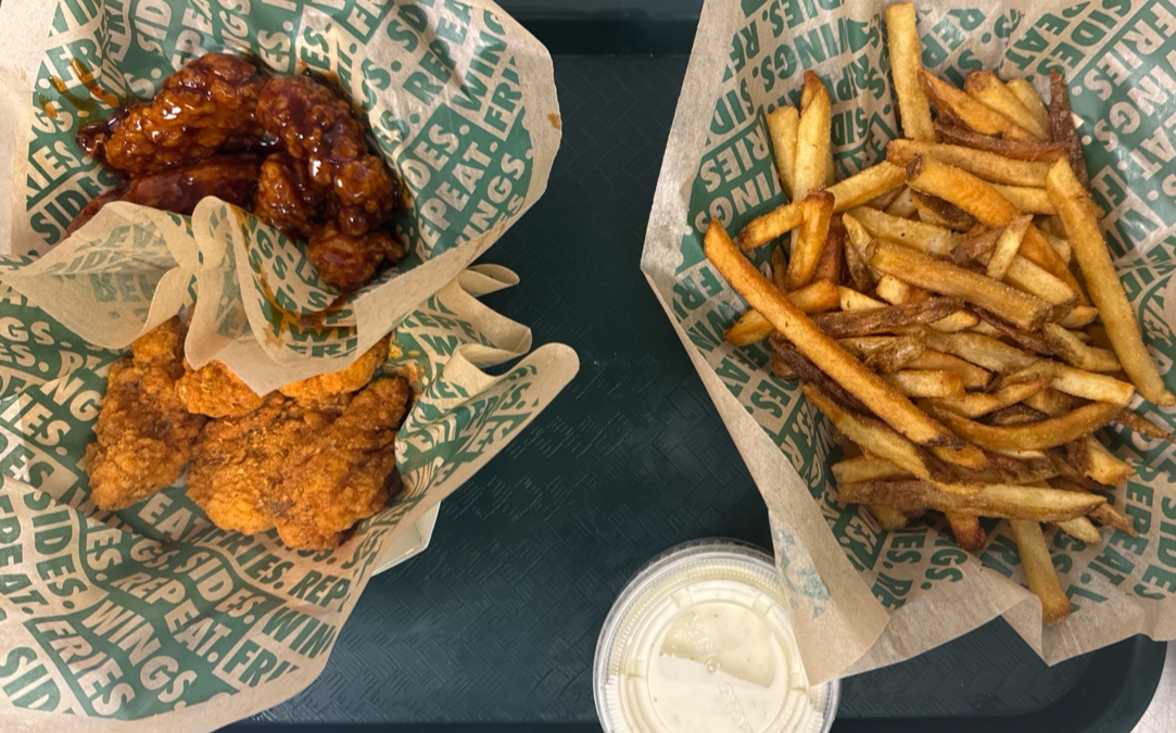 So, first thing is time. If you are in a rush, don't come here. Think I waited for 20-30 minutes for my food? And for 8 wings and a side, that seems a bit high for a casual-fast food place. Seems like they take online orders and those are constantly flowing in and being worked through with in-store orders.
