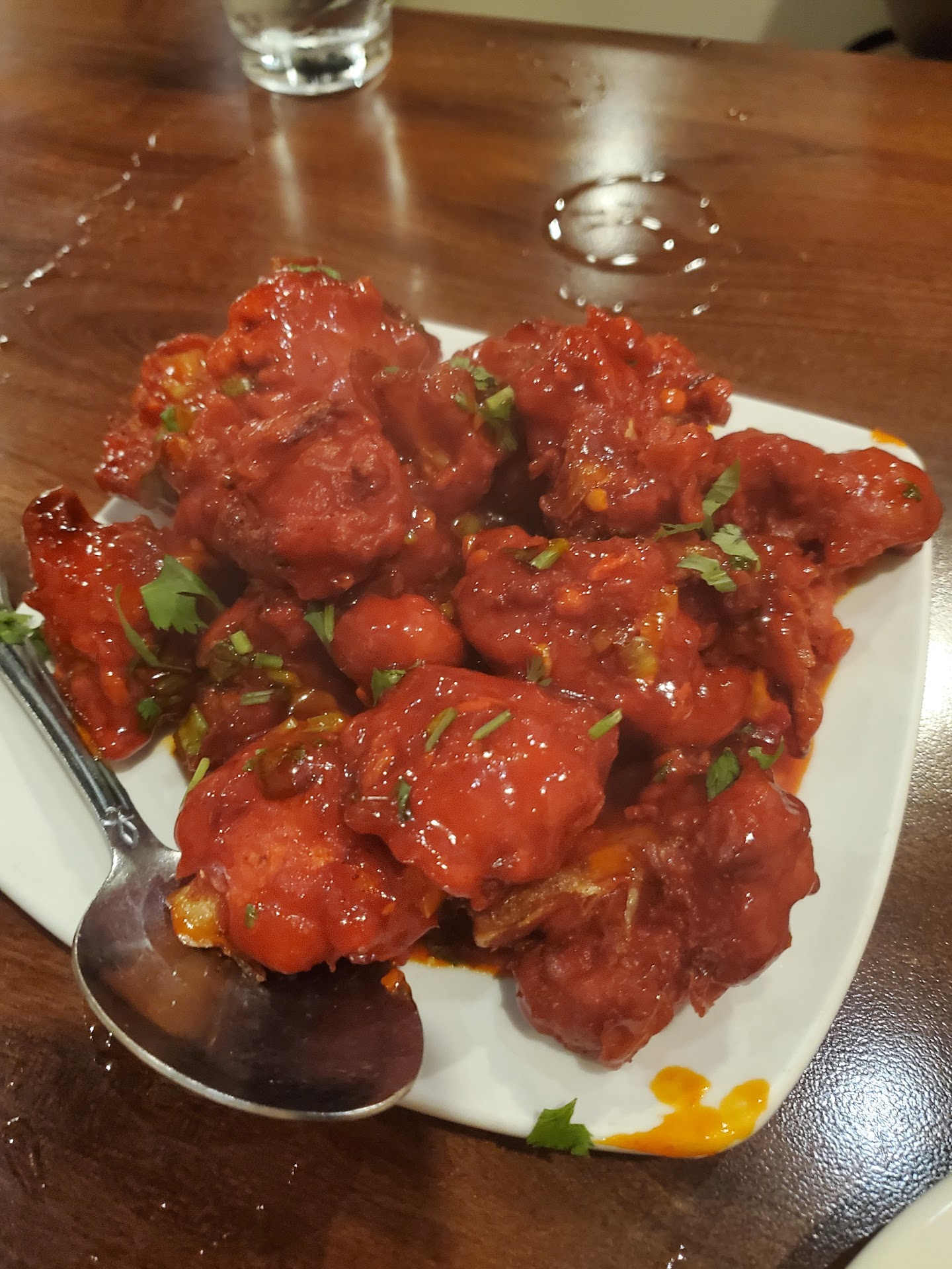 Woodlands? The only thing I can say I regret is that. I wish I could have found this place sooner. The food was flavorful. Let's start with the appetizers I ordered the samosa & Gobi manchurian dry. The samosas had a crisp outside with a hint of sweetness. Kind of like a light flakey funnel cake with a fluffy rich potato center. You get 2 sauces. A maroon sauce, reminiscent of a cranberry sauce. The closest thing to me anyways. The other sauce was green a bit thicker than the maroon. Personally, I preferred the green sauce. On to the Gobi Manchurian Dry. It's not even as close to being as hot as it looks. Lightly breaded cauliflower sauced in... Honestly not sure. Heat levels are in 3 categories: mild-medium and hot. I will say the flavor isn't initial with most foods. It's... I'd almost say delayed. If you like crispy textures. I'd highly suggest it. Entrées? Starting with the chole bhature. The chickpeas breaking in the sauce reminded me of chili however the bread? Crisp is an understatement. Think of the lightest pizza crust ever. Deep-fried instead of baked Now on to the bhagan barta if I remember. This had eggplant-based. It was blended with the vegetables so there's no way to tell. Highly flavorful, rich, and filling especially on the rice. No complaints. I was still full well into the morning. I'll end with customer service. Attentive friendly every step of the way. My glass never stayed empty for long. The food came out fast and the prices were exceptional for all that I ordered. If I could only eat at 1 Indian place for the rest of my life. I believe...
