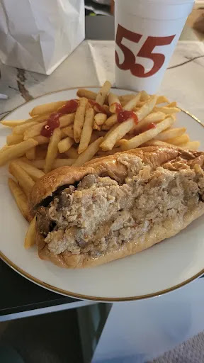 Read moreThis was our first trip.to Hwy 55. We are new to North Carolina and we don't have have these up north. At first blush, this to me was "poor mans" Johnny Rockets. The place we went to the Nashville location. It was a store front in a strip mall. The interior was quaint. It tried to capture the malt shop feel of the 50s. It did well. Service was super. I got a burger and the wife got a chicken cheesesteak. I got tots, she got rings. We were both very happy with the flavors and the portion size. I got a bacon, BBQ cheeseburger. The BBQ sauce was tangy but not overpowering. It was topped additionally with chili, onions and an onion ring. Both burger and tots were well seasoned. Tots we not oversalted. Very good. The wife enjoyed her chicken Philly. I tried an onion ring. Flavorful and well drained. We went for lunch. We were pleasantly full. Any larger portion would mean take home or overeating. Food was out quickly. Not fast food fast but fast enough. The whole experience made for a...