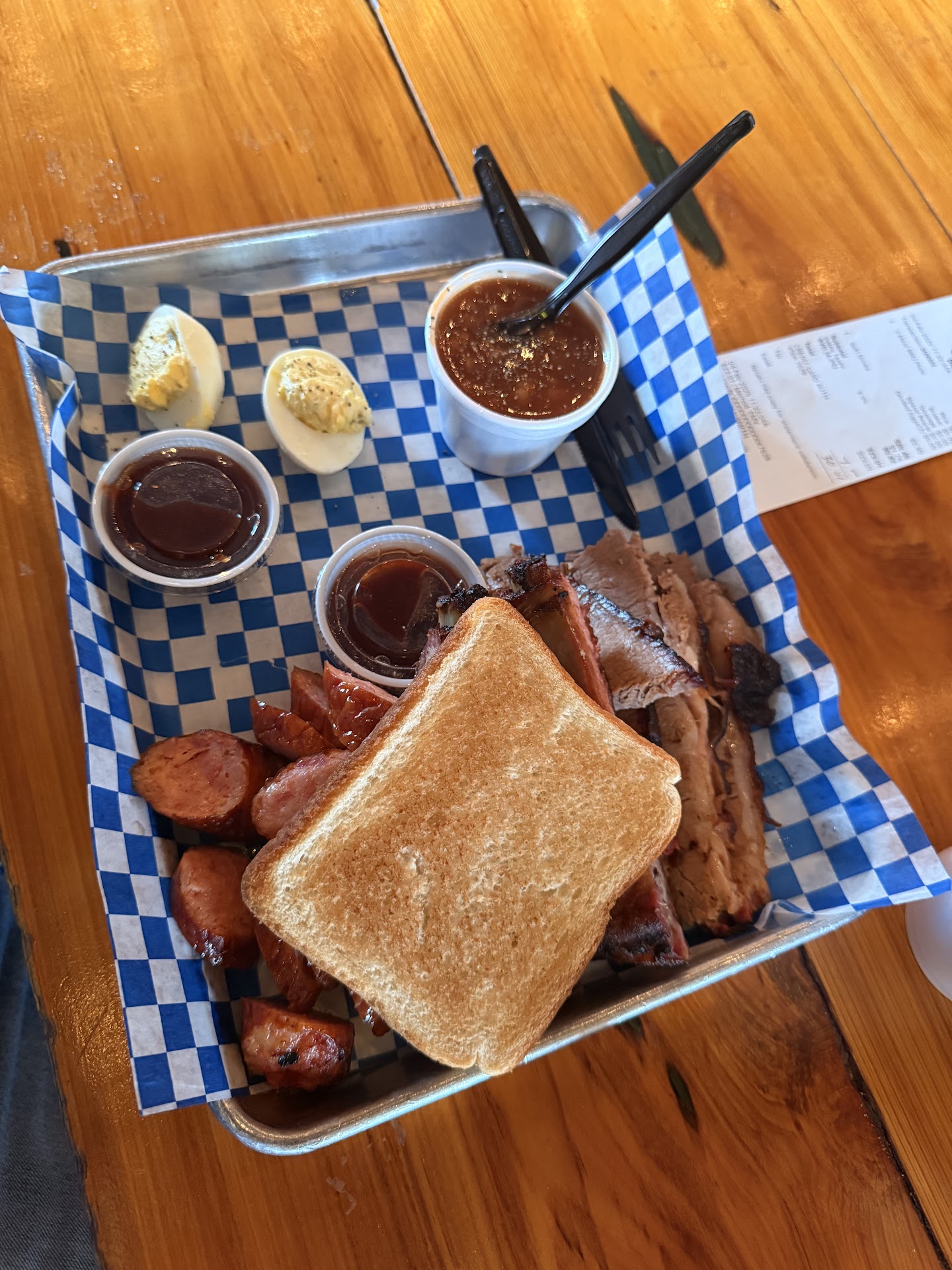 I got curly fries that were not fresh that was a bit of a letdown. They had a sweet potato casserole which is a fantastic idea side. Cuts through the smoke and meat flavors. Certainly throws a bone to people like my wife. Wish more smoke houses would offer it.