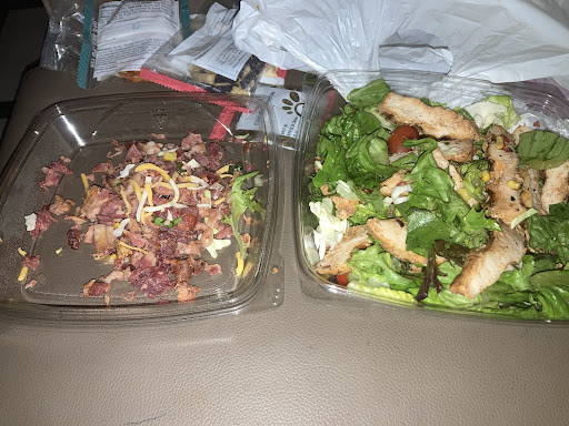 Ordered grilled chicken salad,$8.59, with extra dressing and a cup of water. the order total cost was $12+. I was charged $1.79 for water. After I put the dressing on the salad, I found a very long strand of hair. I could not call the store directly to report the problem because the list number is a University phone line. Can't take care of matter due to a 3pm engagement. Very unhappy. 11/24/19 UPDATE: After my 3pm engagement, I returned the salad and received a full refund. The staff offered me another menu selection, to which I declined. The staff could not explain the $1.79 charge for water. I'm satisfied that the problem was...