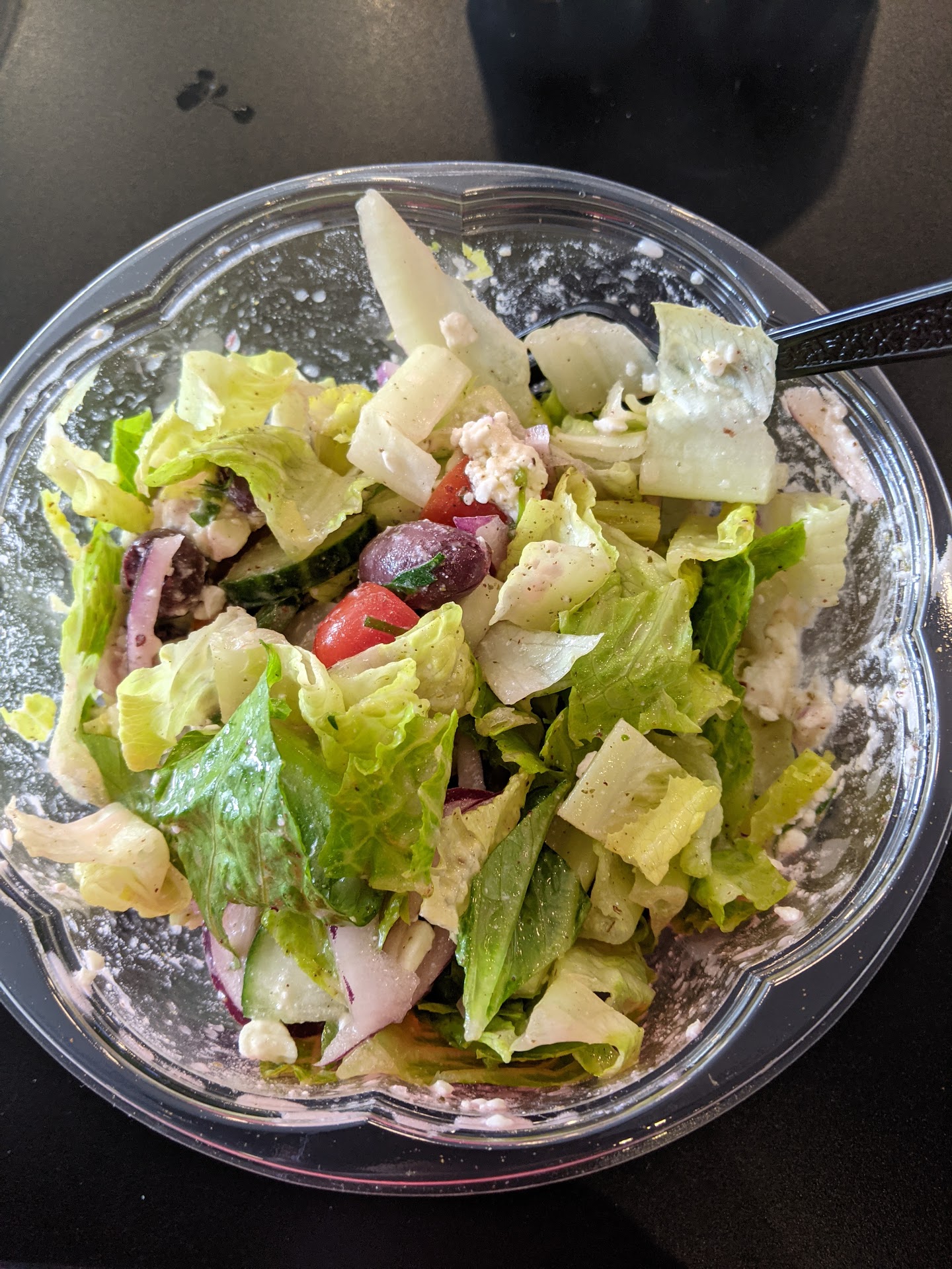Read moreYafa is in a little, tidy strip mall right off the westbound side of Route 9. It is easy to miss, but it is worth discovering for super fresh Mediterranean food. I love a good salad and had a delicious, fresh Greek salad. It is served in a clear plastic clamshell bowl, which is most places means it was prepared in advance, but at Yafa the salad had clearly been freshly chopped. It was dressed with a delicious, light lemony vinaigrette. Altogether top notch. We also had beef swarma served over rice, also delicious, well spiced and served with hummus and pita bread. Again the food is presented to takeout containers, though we ate indoors. This is entirely due to the fact that takeout is obviously a big part of their business.