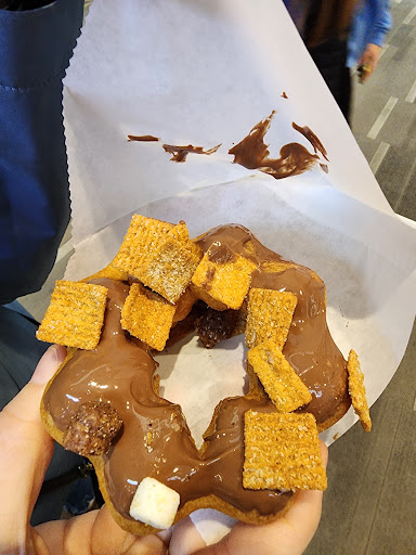 Second Visit Disappointments: Service and Staffing: Encountered a long line with just one staff member, resulting in a slow service. Donut Visibility: Unlike the first visit, no donuts were on display. The cashier had to disappear to a back room to grab donuts. Packaging: If not buying enough for a box, donuts are given in wax paper, which peeled off the frosting. Quality: The dough was undercooked, feeling doughy and stretchy. I spit it in the trash.