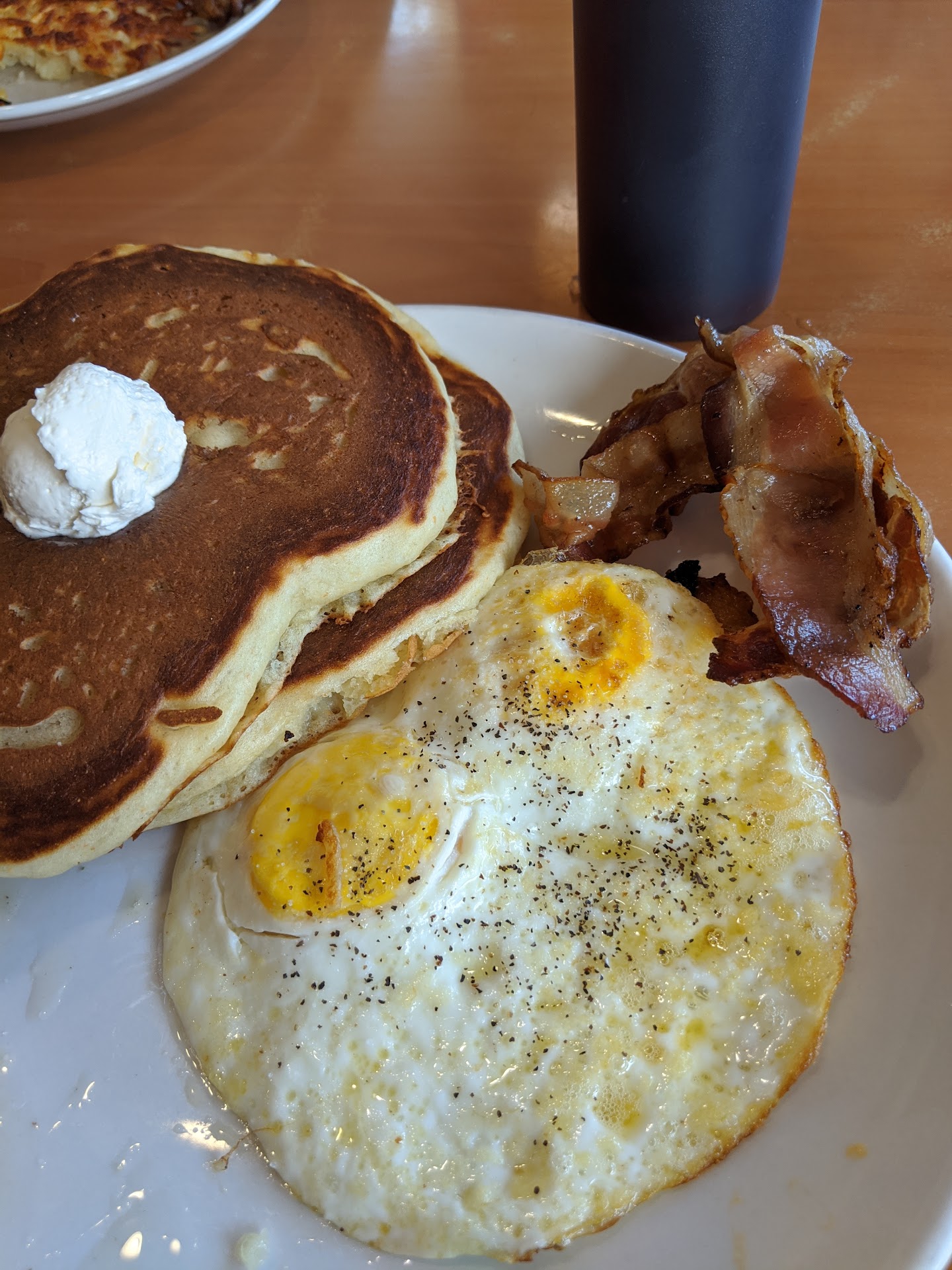 Read moreThis experience was awful from start to finish. It all started when I called to place my order for pickup. No matter what I did, the waitress couldn’t hear me. Then, according to the waitress taking the order, “it was taking too long”. I placed an order for two orders for buttermilk short stack pancakes (3 pancakes) with a side of sausage and grits and orange juice for each. The waitress stated it would be 20 minutes. Great, just enough time to get over there and have them ready for pickup. On arrival I go into the restaurant, and let them know my name for the order. The waitress brings over my orange juices and then goes back to the back. In about 5 minutes she comes back with my order and states that she’s included butter, ketchup (not sure why), and syrup. I take the order and leave but once outside, I realize my bag is too light to have grits so I check the order...no grits. So my boyfriend and I go in and they greet me with, “the grits?”. On confirmation, the waitress goes on back and comes back with one cup of grits. I ask her where the other one is because we had ordered two. She states, “there was only one order, do you want to buy another one?” I tell her no, it’s fine, we’ll share. We head back outside and check our order again. There’s no syrup and only one butter and one set of plastic ware. My boyfriend has to head in twice more in order to get syrup, butter, and another set of plastic ware. The waitress very much had an air of “why are you coming back”, “why are you here”, “what is your problem”. Unfortunately, all this trouble did not give us a reward of good food. Instead the pancakes (only 2 in each order) were dough-y and were overall unsatisfactory. The sausage was ok. The grits were made with milk (?????????) and were very sweet. If that’s how you like your grits, then you’ll be pleased, but I was not happy with them at all. Overall, the customer service was the worst I had ever seen and the food was at best...