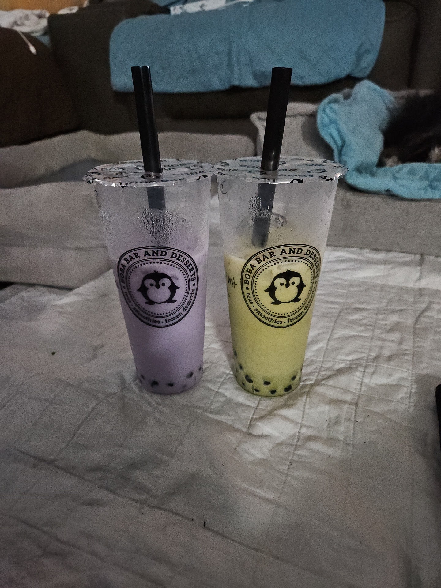 Β Β Β Read moreLove this little place so much!!! Great desserts, delicious boba, and a good amount of options to try. I had to stop going because I got pregnant and was avoiding GD but I've been going in regularly recently and usually get the same stuff, hasn't changed much but still has great options and great service! I usually just go in but my cousin said you can call to pick up and they might offer military discount. Gotta love a classic milk tea, brown sugar or strawberry is always good never watered down. Any slushies or any smoothies when it's really hot outside are so good and all drinks we get with Honey Boba but they have others!! Whenever the girls are working the chocolate chip puffles are always perfect!!! Sorry guys but I look forward to it enough to notice and prefer the girls since they put the chips in each puff so it's way better!!! The strawberry shortcake dessert puffle is a favorite to share with friends and I even got my family hooked on the slushies. We're going back regularly now...