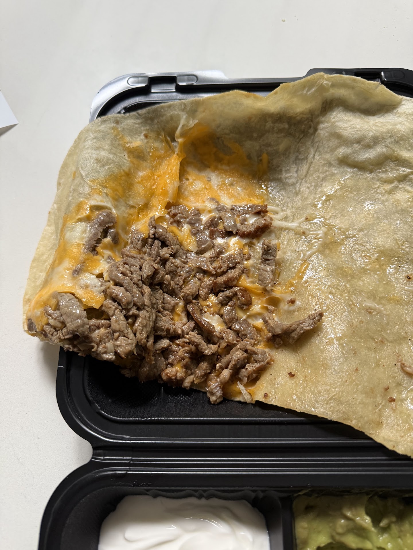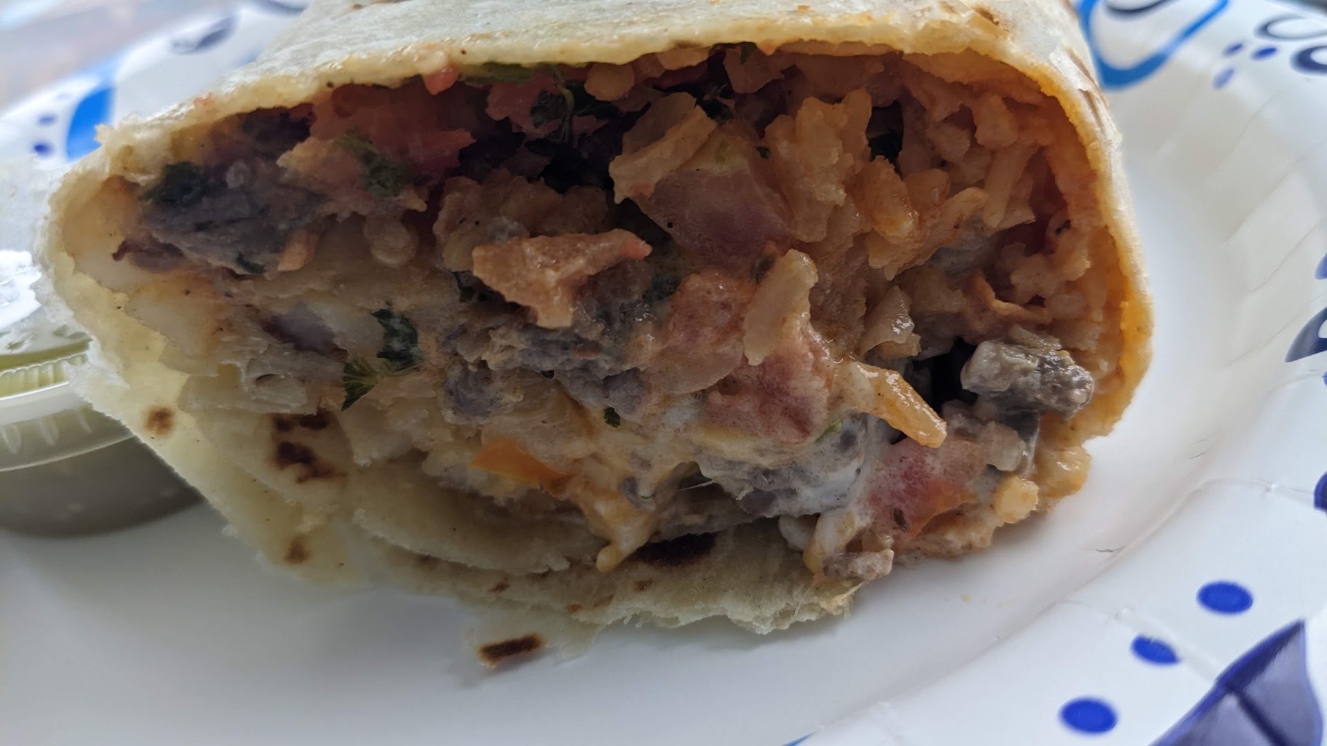 The Burrito: They whipped it up fast and served it piping hot. This thing was massive and loaded — lots of beef and a good mix of fillings. They also offer a chicken version, but I went classic with beef. The tortilla, sauce, fries, tomatoes, and cheese were all solid on their own, but somehow the flavors didn’t quite come together as a team. If the meat had been a bit warmer or freshly grilled, I think it would’ve hit better. Bonus points for the sauces. They looked super watery, but wow — bold and flavorful. Price was $13, which is about average around town, maybe slightly on the high side. Burrito rating: 7 out of 10