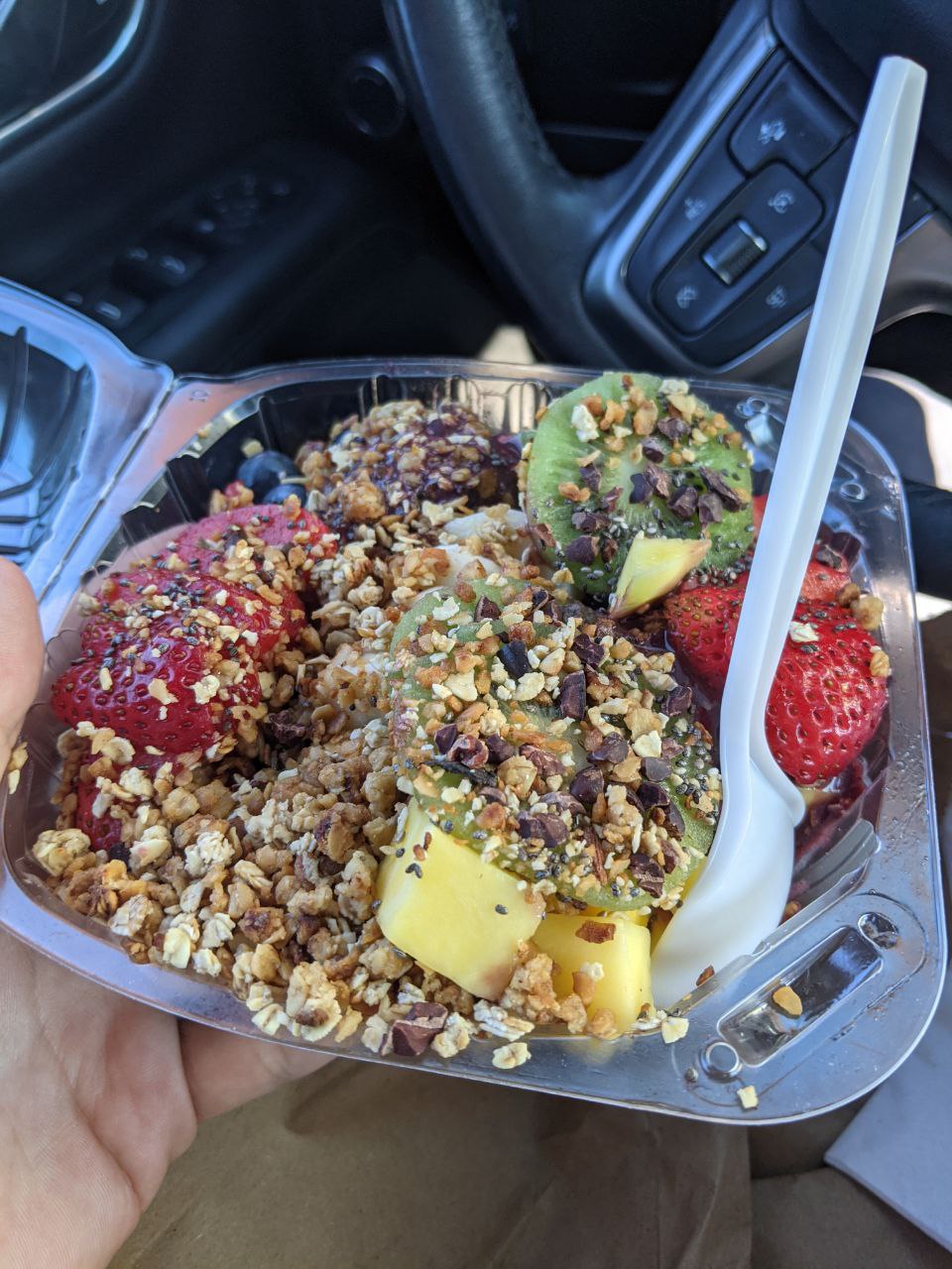 Food: Got an Acai bowl. While it didn't taste bad, this teeny tiny container is like $15. I used to come here every now and then as a treat, since these bowls used to be like $10/11. Not only are the containers smaller now, but increasing the price WHILE shrinking the container size is nuts. It's still better than other places I've been to though. If money isn't an object and you're bougie, you'll probably like it. If you want a fair price though, this...