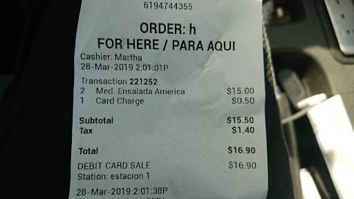 Read moreI'm Giving it 3 stars because there isn't a 3.5 option. The food options are always delicious but the service could improve significantly. The owner although friendly lacks customer service. He accepts complaints but rather than correcting they continue to happen đĄ. Wait time is ridiculous. They take orders over the phone but do not start preparing after you pay. So its basically pointless. There have been multiple times my order has been ready and no one notifies you. You're also not allowed in the store due to covid restrictions and the size of the store (small). I've told the owner multiple times but I actually think he doesn't care... Also, huge warning, take cash, they rip you off on CC fees - $1.50 even on order under $5.00. I use Square for my business and the charge is less than 2.50%, NOT 30% as in the example above... Anyway getting off my soapbox. At the end of the day my family and i...