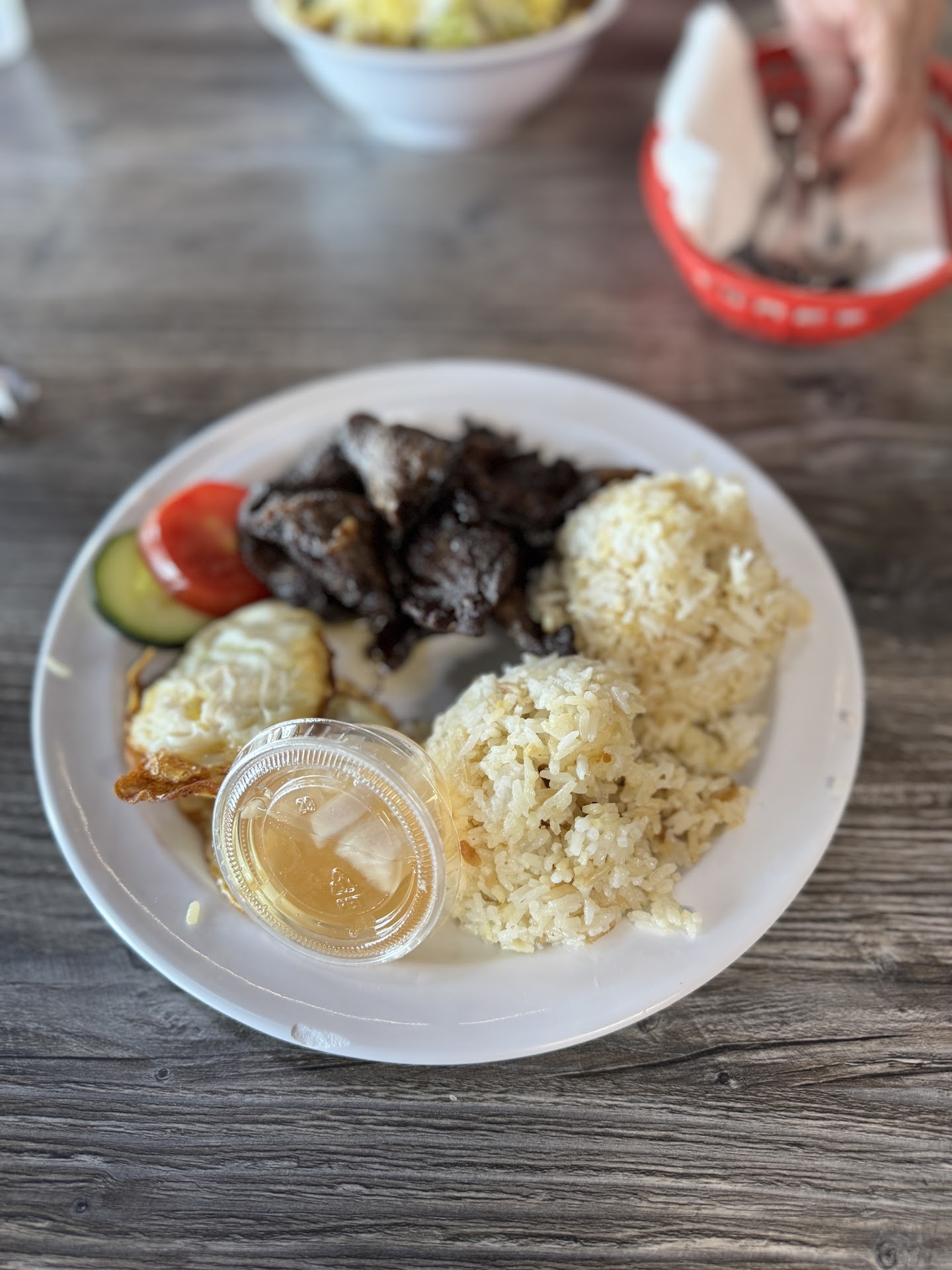 A new Filipino place to try with my mom. There's plenty of parking when we arrived around 11 AM on a Sunday. Walking in, the place was pretty busy. Food is ordered at the counter and they deliver to your table. We ordered the beef mami for my mom and Tapsilog for me. The mami was delicious. Beef was very tender and very tasty. The noodles tasted very good, too. Tasted like they cooked the noodles in the beef broth. The tapsilog was also very good. Beef tapa was very tender and not salty. A lot of restaurants that serve tapa make it too salty. This place was just perfectly seasoned. eggs and fried rice were very good, too. Will definitely come back here to try...