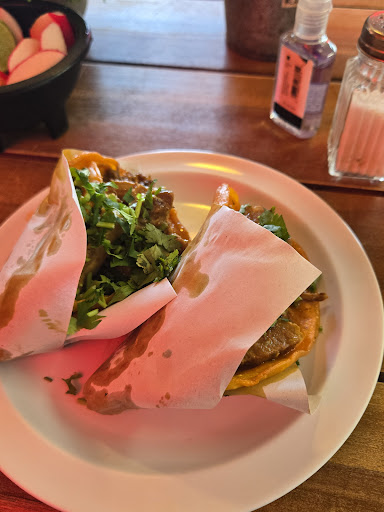 I was nervous because I like what I like. especially when it's birria. And I don't really like most places, especially since birria is the most recent food fad in San Diego. But I tried this place based on a friend's recommendation, and I'm glad I did. The birria was excellent. I had sin tortilla tacos, and they did that very well too. They were nicely crisped and browned. And the portions were generous but not comically large. They were served with some really tasty pickled and peppered onions which were good on their own, but raised the tacos to another level. The added texture and crunch of the onions in the tacos is really nice. And I have no idea what is in the salsa, but someone clearly created it specifically for birria. It's really good. Like I asked for a spoon and just ate two or three spoonfuls of just the salsa because it's so good. It's not really hot but it's definitely tasty. My food was served quite quickly. I mean within about 5 minutes of ordering, which makes sense because it's birria. This place deserves that you at least give it a try. I have gone back twice now and will continue to visit. These are the type of places that we need...