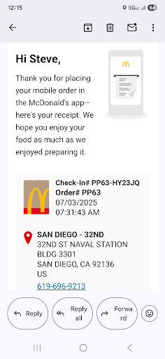 Ya know ... What can ya say about Mc Donald's ... It's fast food and not all that great. But if you want a great meal and you have like $40 you want to get rid of .... You are in the right place. I like the mobile ordering. It seems to be relatively comprehensive outside of pickles and onions. If you want to add anything, cost more money ... Including tartar sauce on the fillet of fish which is always skimpy to begin with. But with this particular location, even though I understand that they do a lot of business and clearly this franchise is making a fortune because it has a built-in customer base with all of the ships in Port. They literally do not have enough staff to make it go properly. They put in a whole bunch of automations and reduce the workforce. On a daily basis this is what happens .... You make your mobile order then when it's ready they call out the number that was assigned to you when you made the order, not your name .... It takes you maybe 30 seconds to walk up there and grab your order once you match the numbers. The problem is if you want to get extra ketchup a packet of salt, one of the sauces, a courtesy cup pretty much anything! You have to wait around for another 3 minutes for one of the people in the back to come back up to the front counter .... I understand that everybody's trying to save money but these people are making so much money off the Navy. They should have somebody distribute condiments as the customers wish after spending $20 plus...