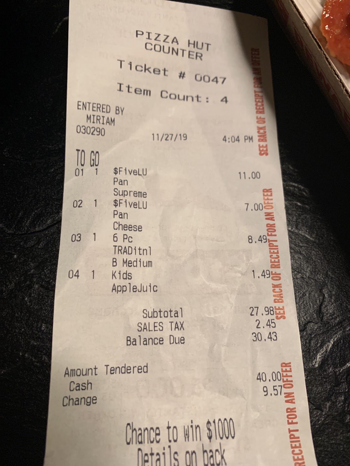 Read moreCame to order 2 large pizzas. I asked if there was an offer available for what I wanted. Cynthia was my cashier - she is tan lady fairly large in body size. Her customer service was horrible. I ended up paying like $28.50 for two large ONE topping pizzas and the offer was better deal. The offer was large THREE topping pizzas plus breadsticks for $28.99. I ended up paying the same for two large one topping pizzas with NO breadsticks. I came back in and told a second blond older employee the sitiuation. SHE LITERALLY DIDNT CARE AT ALL. Mind you, this was my first time going there and I was actually excited to get and enjoy a pizza at home. The blond employee said - we dont have breadsticks anymore so we cannot validate the offer for you. After I ordered, there were still customers coming out with breadsticks. If they had told me about the offer, I would have ordered the offer as well. They didnt tell me though. I said - could you give bone out wings to make up for what happened since I have the one topping pizzas - she said No. SHE DIDNT CARE AT ALL. THIS WAS THE WORST CUSTOMER SERVICE I HAVE HAD IN A WHILE. IM HONESTLY SO DISAPPOINTED. I HAVE WORKED IN CUSTOMER SERVICE PLACED AND I HAVE NEVER TREATED A PERSON LIKE THEY TREATED ME. The blond lady didnt care at all. She didnt give me the bone out wings. She didnt offer to give me the two lrge pizzas with THREE topping. She literally didnt do anything and didnt care. IF I COULD PUT ZERO...