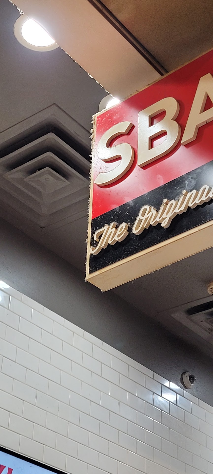 Eaten here recently? Enjoy some dust seasoning from the Sbarro sign that is suspended directly above the hot foods. It looks like it hasnt been wiped down in over a year, possibly 2. Id rather get Pizza Hut from Target downstairs since its actually clean. How could you let the most important visual aid to draw people into your business get like this? Do...