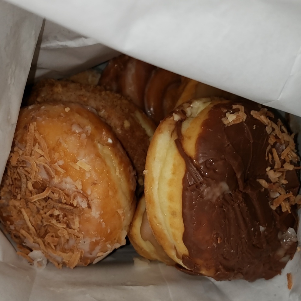 Read moreWent last night for a half dozen, everything looked soo good. I thought about getting a dozen to try different ones but realized I was on my motorcycle so I had to decide which 6 to get. The lady working there was kind and patient with me explaining which donuts had what as I pointed at them. When I got home I open the bag to find 8 donuts, she was so generous to throw in 2 free donuts. I will definitely be back soon to try the other donuts I didn't pick LOL P.S. the glazed had just barely came out (which she had mentioned to me) I told her to throw one in the bag as the last donut so it wouldn't get all squished. It was better than Krispy Kreme, I would definitely buy a dozen glazed and find a way to strap it onto my...