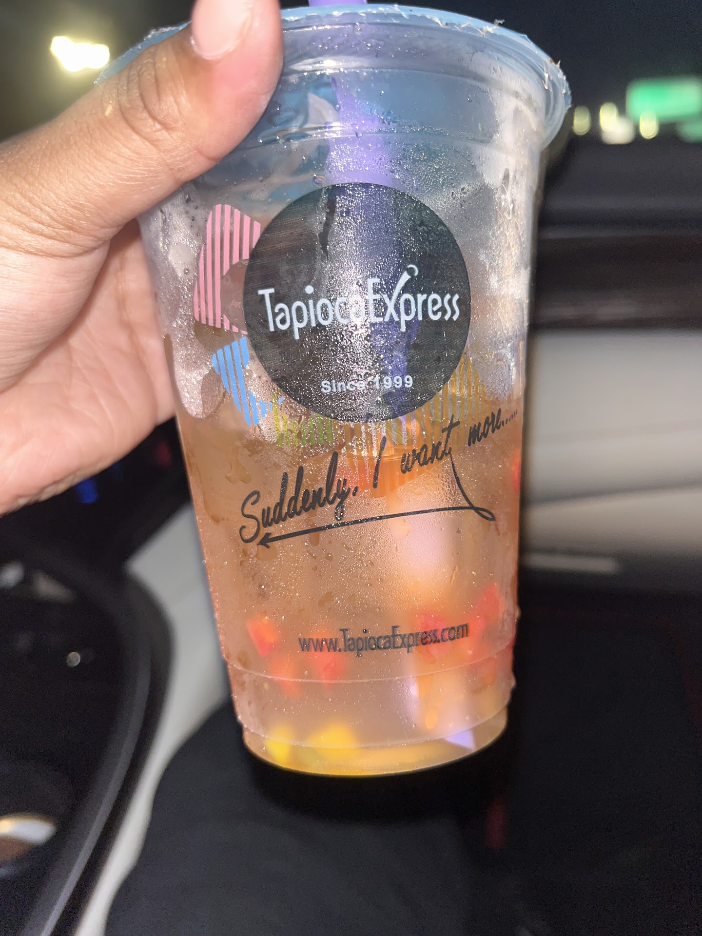 Read moreCame for a quick tapioca drink. Love the fact that places like this exist here. It's my first time coming in this shop so we decided to order some porkbuns and fishballs. The fishballs are just like the Filipino street food except they only offer ranch or sweet and spicy sauces. The porkbuns came in a pack of 5 which wasn't noted on the menu they had up. So now instead of 2 porkbuns, we have an excess of 8 additional ones. Not much of a complaint with how much i paid for it but it would be nice to know how many pieces im getting before i ordered since it clearly said "pork bun" not "pork buns". Granted they're the smaller sized ones. Quality of the porkbuns can be compared equally to those of frozen store-bought porkbuns. Will more than likely go back here and try different flavors when I'm craving some tapioca drink. Also, one of the employees said that couples usually go here but I'm guessing most of them are college or highschool students. Personally, i wouldn't come here for a conversational date since the music is...