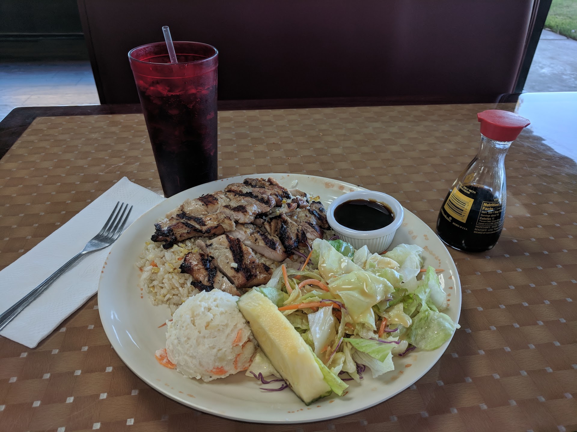 Google recommend that I try out Teriyaki Sun as a new restaurant near me, and I decided to try it tonight. It wasn't very difficult to get here and parking wasn't bad at 6pm. The dining area is fairly plain and simple, but very clean. The decor is Island inspired, with an island / Asian fusion menu. I ordered the chicken teriyaki, with fried rice and a coke. It came with a salad that is tasty, and crisp, with a creamy ginger dressing. The potato salad was not what I was expecting, but I am very happy with what was served. The potatoes seem to be hand mashed with circular sliced carrots and macaroni. It was very mildly seasoned, which brought out more potato taste, which I think is a bit unique for an island inspired side, kudos for that. The chicken has a mild marinade if any at all, but is grilled perfectly. It is boneless thigh meat. It is served with a side of teriyaki sauce that is tasty. The fried rice is good with egg, corn, carrots, onion, and green pepper. All in all, the food is not over seasoned, which is a huge plus for me. The portions are more than adequate for all but the heaviest of eaters. Google referred me to Teriyaki Sun, and I am glad they did. I wish it was closer to my home so I could go more often. I certainly suggest giving it a try for when looking for good food but nothing fancy. As always, I rate stars as follows: 1- not good all around, 2- some good good value, but pretty common and nothing stood out, 3- a solid choice all around, 4- one of my favorites, 5- a great experience all around and very unique...