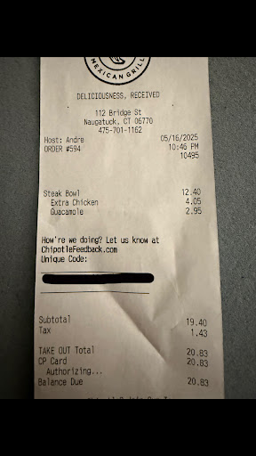 Yikes⦠I would generally never be too hard on a place that hasnāt been open very long. In fact, I've actually defended this Chipotle against some attacks during its first couple weeks. However, I finally went there myself for the first time, and the level of rudeness and incompetence that I experienced was profound. I ordered for online pick-up and my order was said to be ready for 12:40. I got into the pick-up line at 12:43 and there were three cars ahead of me. The line never moved. At 12:55, one car ahead of me got out of line, parked, went inside, and immediately came back out with their food. I followed suit, as did the car that was behind me. When we got inside, there were three workers just kind of standing around doing nothing in the pick-up area. A girl (who appeared to be stoned out of her mind) asked me what my name was. I gave her my name, and she proceeded to laugh at me, walk away, and continue to do nothing. Then one of the other workers came over and asked for my name and the other person who had parked from the line. The worker went over to a shelf where our food was just sitting there for however long, and brought it over to us. When I went back outside, that car at the front of the line was STILL just sitting there. How do they not have that car park and continue to service the other people in line (like every other place with a drive-up window does)?!? Needless to say, my food was super cold, and not nearly worth the $30 dollars for two burritos. I might try them again in the future, but right now Iām kind of dumbfounded. When they opened, there were many young people who were very exited about the opportunity to apply for jobs there, but they didnāt really have any openings. They could have built a great staff of eager Naugatuck residents, but instead, they seemingly transferred over a bunch of misfits from other...