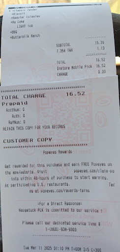Read moreReally sad… I gave them multiple tries even after they continued to mess up every single time I visited there but they lack the effort to improve in anyway at all so I finally give up. Would not recommend going to this Popeyes in anyway at all, better off going to the Waterbury one instead.