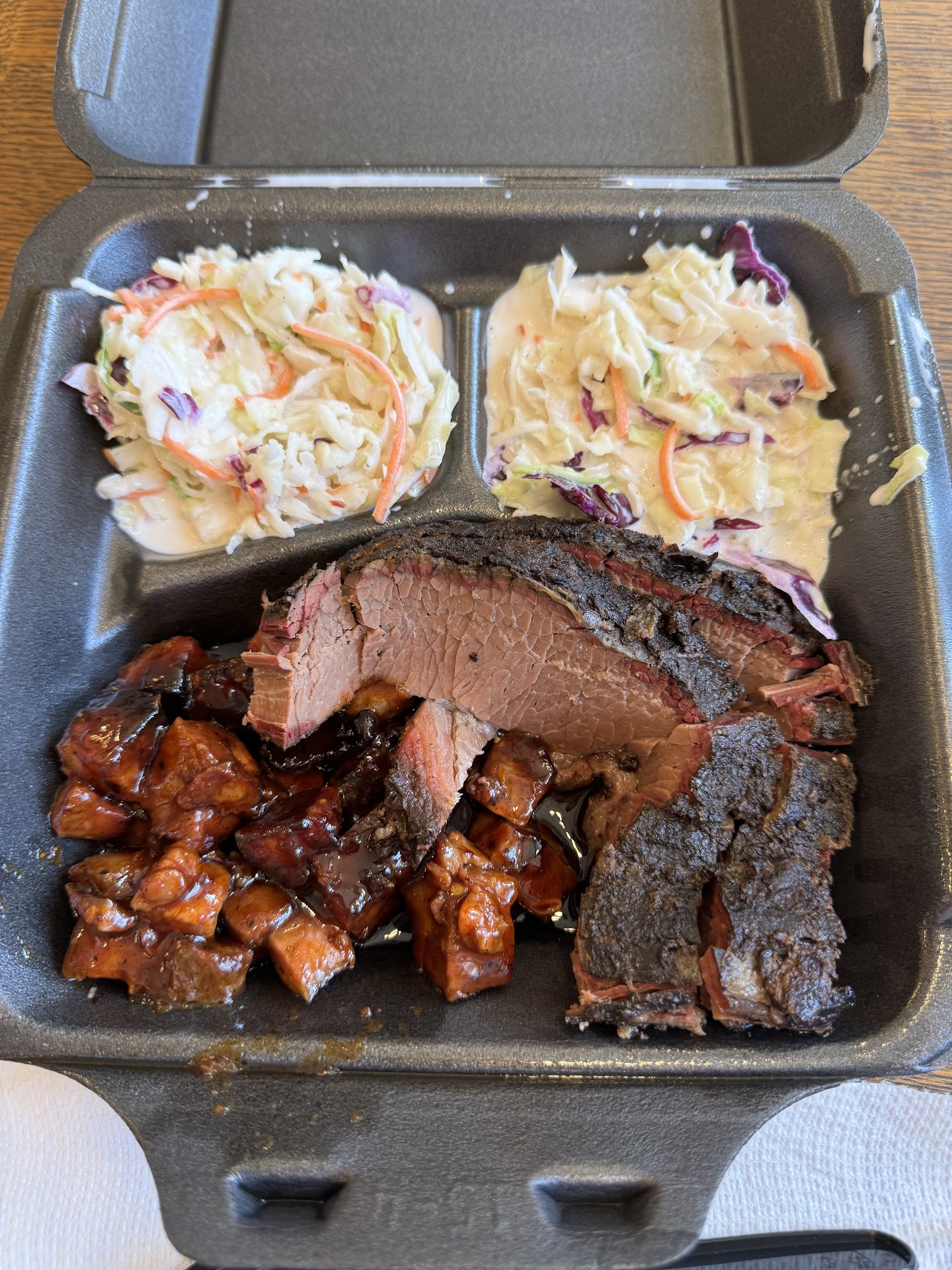 Read moreGood food and not skimpy. Got the ribs and their sauces were good. Friendly service until and not after I gave a 20% tip at the begging till and I noted the sign on the table "Please clean up after yourself". I Bought the fact up with the cashier (politely) I was not happy about paying a tip for service then seeing the sign asking me to clean up after myself. The biggest disappointment was the look of distain from the cashier when I voiced my opinion. BTW we did "clean up...