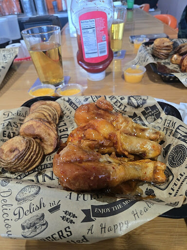 The food was fantastic! I had the Philly cheesesteak panini - it was huge and maybe the best Philly I’ve ever had. My wife had the bacon cheeseburger, that was also outstanding. Others in our party had the Buffalo drumsticks. Huge chicken legs about half the size of turkey legs. All of the meals came with fried potatoes that were first spiral cut, and then lightly fried - delicious!