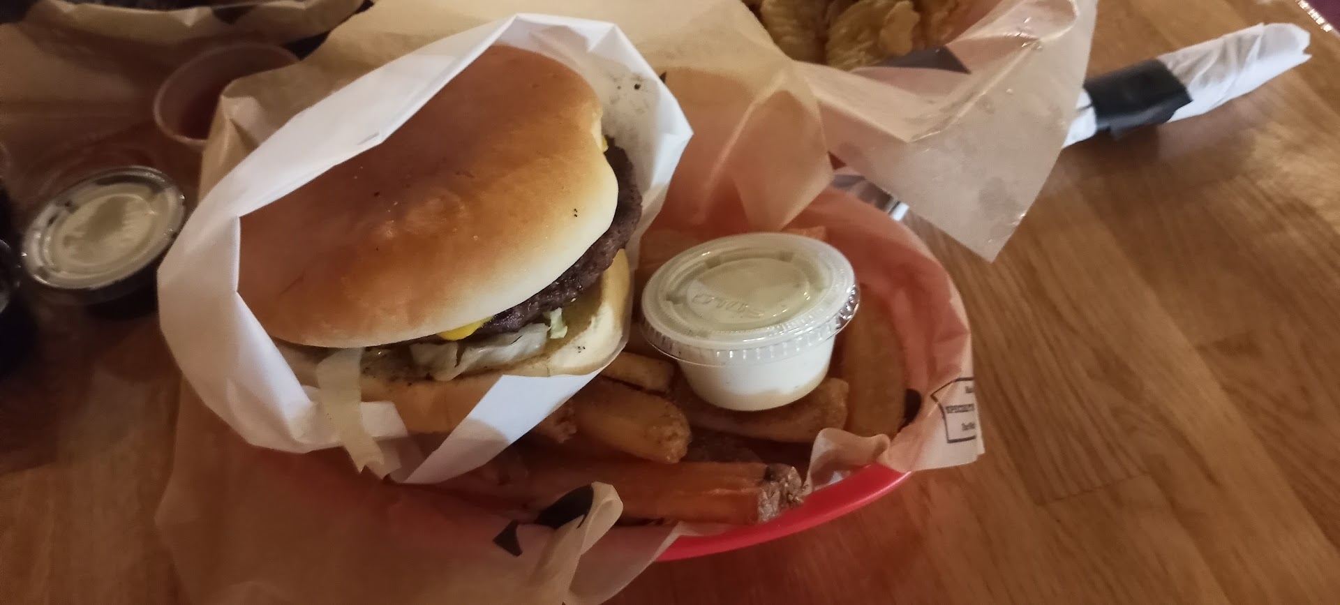 Read moreThis place was awesome! We got there at 1:30-2pm and it wasn't too busy at all. You seat yourself, and then someone will come out and bring you a menu and take your drink order. They came out maybe 5 minutes after we got there so we didn't feel rushed but we also didn't feel like we needed to find someone to help us! We ordered fried pickles and mozzarella sticks to start, they were AMAZING. We get friend pickles everywhere we go but I honestly think this place was the best we've ever had. The batter they use was thin and crispy, not too salty and a HUGE serving. The Mozzarella sticks were good too! But the pickles were the show stopper. I got the chicken strips and my sister got the burger. Strips were perfectly cooked and the batter was perfectly crunchy. My sister said the burger was amazing. And the fries! 🤤 So good. The atmosphere of this place was super warm, inviting, and friendly. You could tell it's a place where locals go often. There was a good amount of parking but I imagine come 7pm when the dance hall starts it gets a bit more tight. They have handicap parking and very wide doors to fit wheelchairs if needed. The dining area is laid out so if you're in a wheelchair you can easily find a...