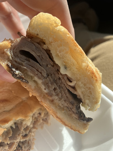 The French Dip was the most poorly executed example of that sandwich we had ever seen. The beef was simply packaged deli beef and was in no way prepared with any of the seasonings a French Dip should have. The au jus was similarly an unprepared beef broth, which lacked even salt. We're pretty sure the cheese was American-style single slice Swiss because it fully melted. The bread was excellent, but wasted on such a poorly prepared sandwich.