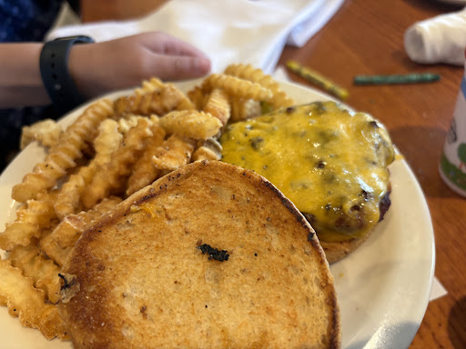 Read moreWhen my family of 5 arrived it was sunday night- the host stand was chaos. The person at the front asked how many we had and when I told her 5 she said, "And you didn't call ahead?" Like we should have known to since we just got into town and the place was adjacent to our hotel- I'm assuming she just worded it poorly but still. We were seated by one person, another took our beverage order and then another came to take our food order but since it was less than a minute later we weren't ready so she said she would put in an order of beer bread... and then came back and told us she wasn't actually our server as the person who took our beverages actually was, but neither one of them knew that. Long story short we never recieved the bread and when I inquired about it or server told us "just for next time I need to ask for it ahead of time." This was the second time that someone assumed I should know the protocol to somewhere I have never been. Food wise, My daughter's ribs were REALLY good, the shaved roast beef for my son was meh since he didn't want the gravy on it so it was warm at best, my wife's french dip was decent, my youngest was satisfied with his pb&j but my Bacon Guacamole Hamburger was the worst hamburger I have ever had in my life. It was cooked WELL WELL WELL done, charred to a crisp and wasn't even in depth across... one side was an inch thick and the other was 1/2 inch. I'm not sure if the patties are supposed to be round or square because ths was neither. The flavor and moisture had been cooked out of it and the guacamole was lacking in depth, texture and the flavor one would associate beyond sliced avocados which might be okay but the cheese slice was so small there was nothing to bind it together with the heaping pile of shaved lettuce... which was nice texturally but that was the only good thing about the burger.. yep... the thinly shaved lettuce on an unevenly dry burnt...