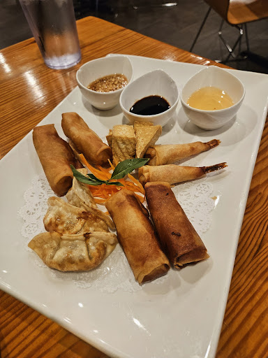 Went here because it is a new Thai place in my area and I missed Thai food, but wow let me tell you that the food was out of this world it was so warm and flavorful! Everything was marinated and cooked to perfection. We also got the Thai tea drink, it's like a sweet treat in a cup it's literally such a tasty drink. We also got a sampler platter and pineapple curry and a few other dishes to try, every single dish has its own flavor and sits well in the stomach. There's also vegetarian options and healthy options for those with dietary choices. The service was amazing! The server we had was Ashley, she was really great at serving every single table and just being so sweet and conversational. The family that owns it are so sweet, and it was just a very nice atmosphere. I give everything in this restaurant a 10 out of 10. I will be coming back and trying more dishes!! I left with my stomach happy and my mood lifted. I highly recommend for you to come here bring your friends, bring your family, or just go on a solo dinner or if you just want to try...